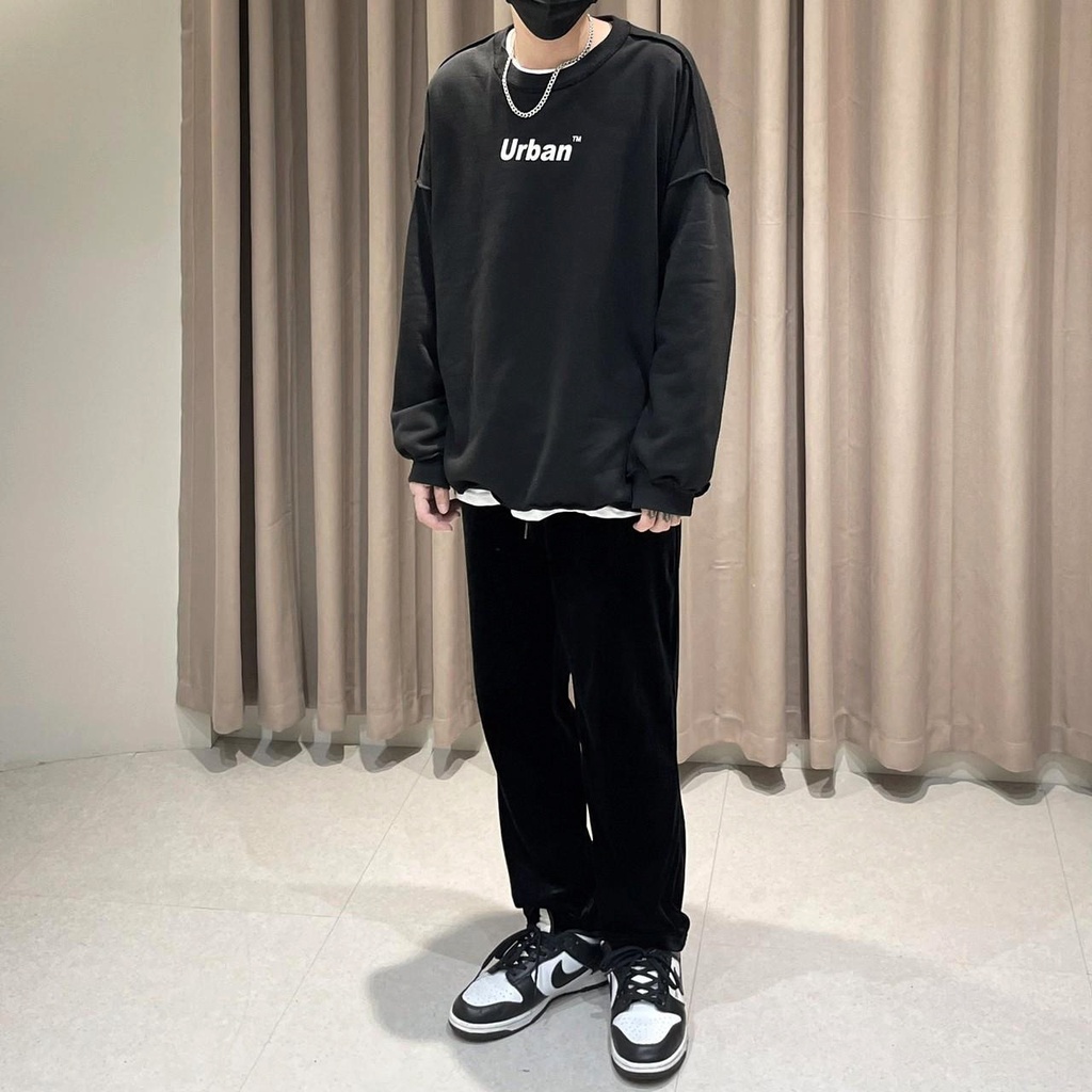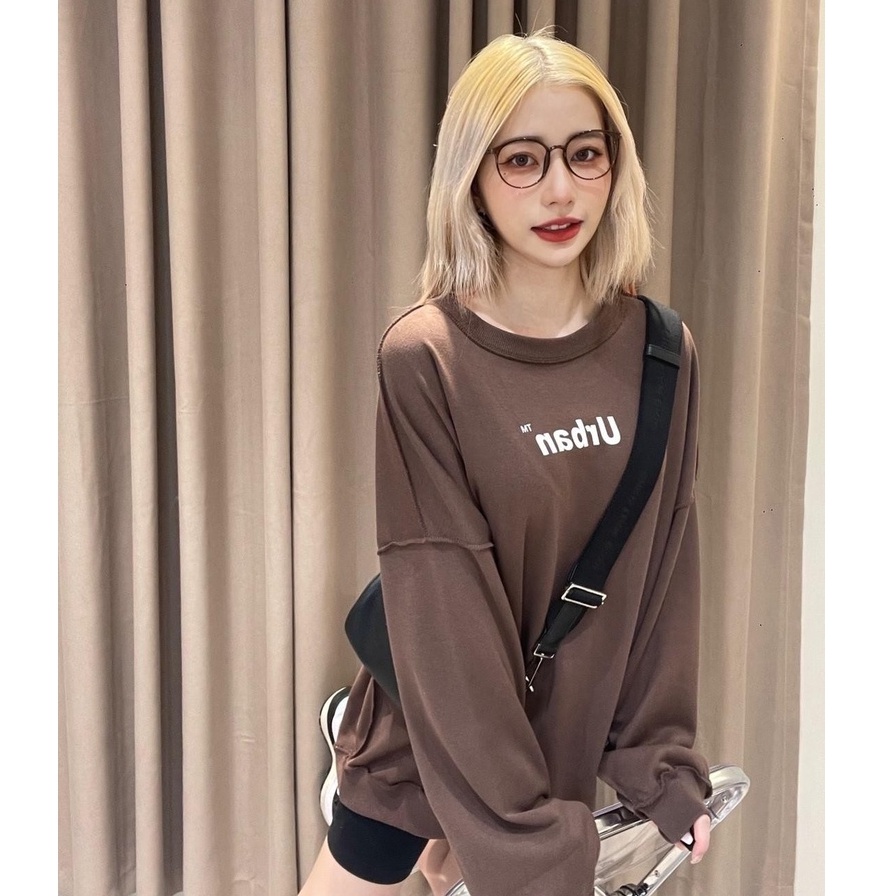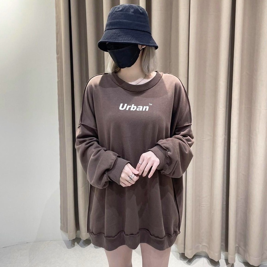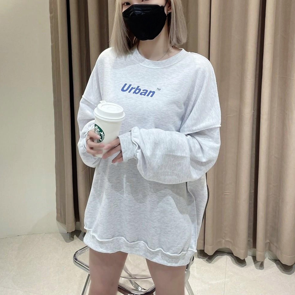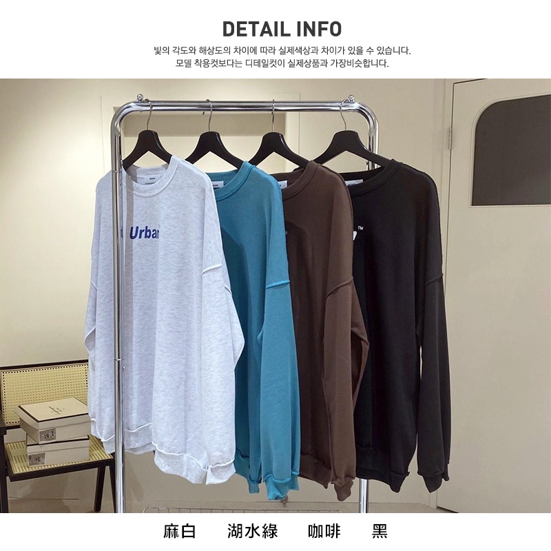 大學T 韓國 Urban印花外車縫線 寬鬆落肩長袖T 情侶【PA�10043】現貨+預購