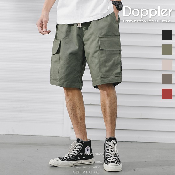 短褲 日系潮流口袋工裝五分褲 伸縮腰圍設計 【TJHKKZ764】現貨+預購