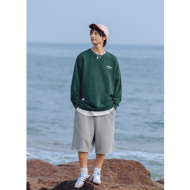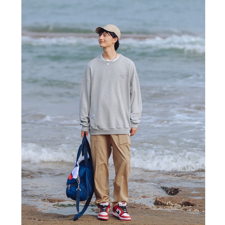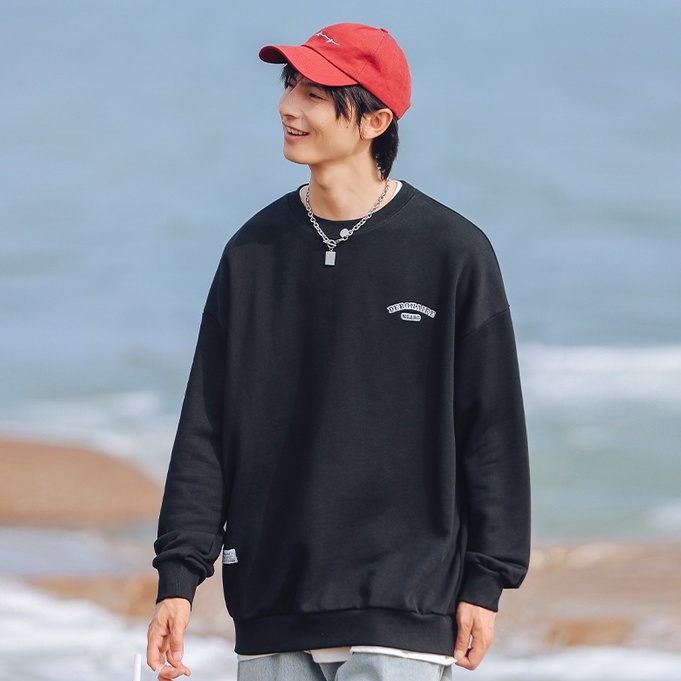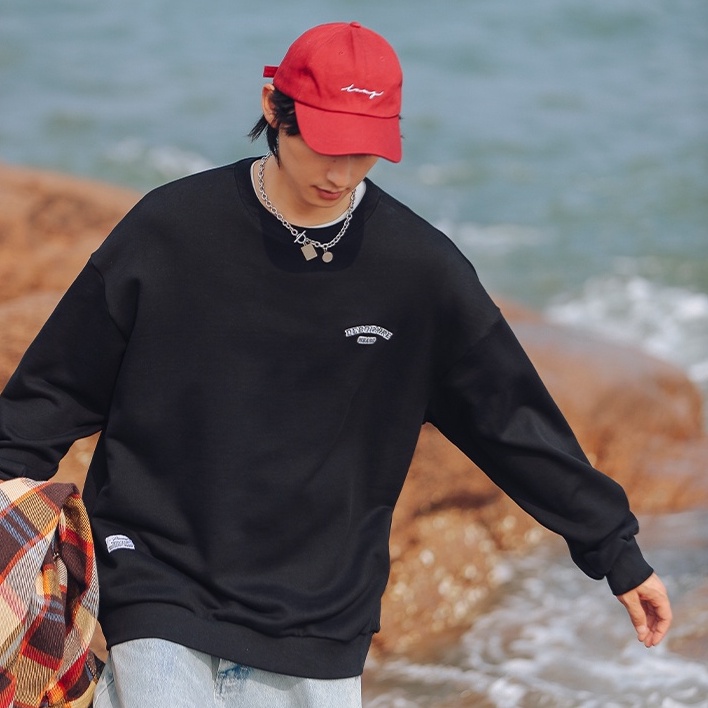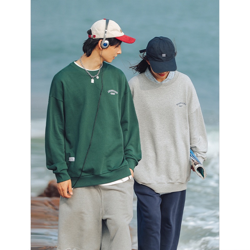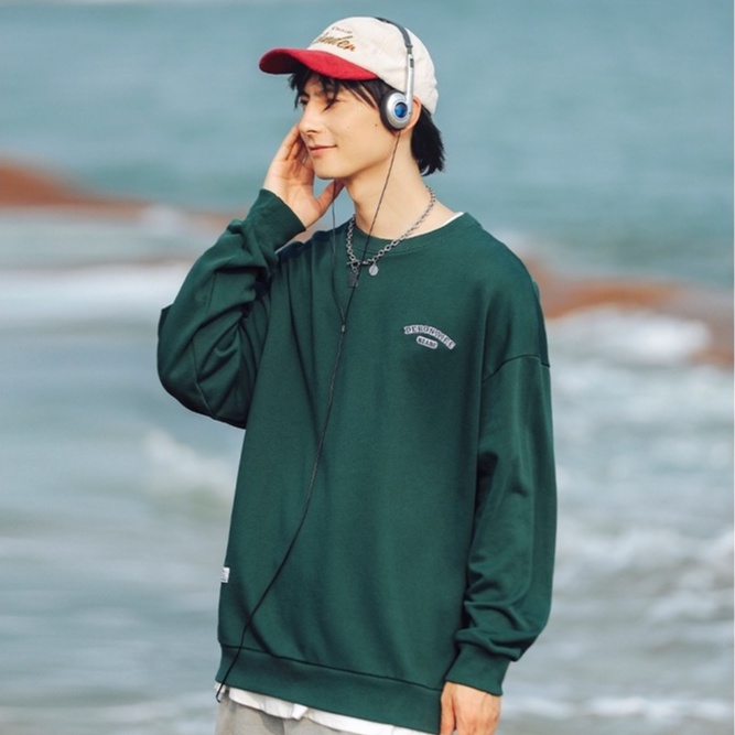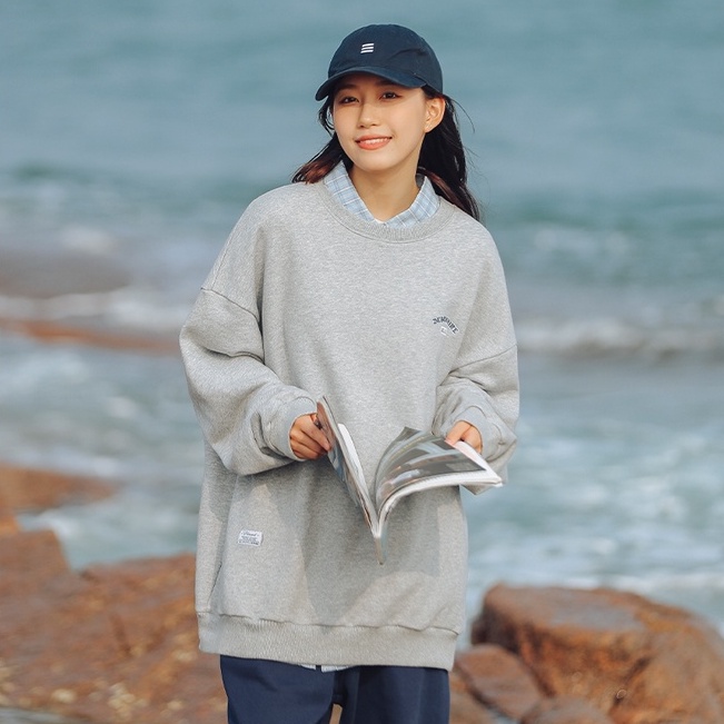 大學T 美式電繡文字設計 圓領長袖上衣 寬鬆落肩【TJJ3589】現貨+預購 男女可穿