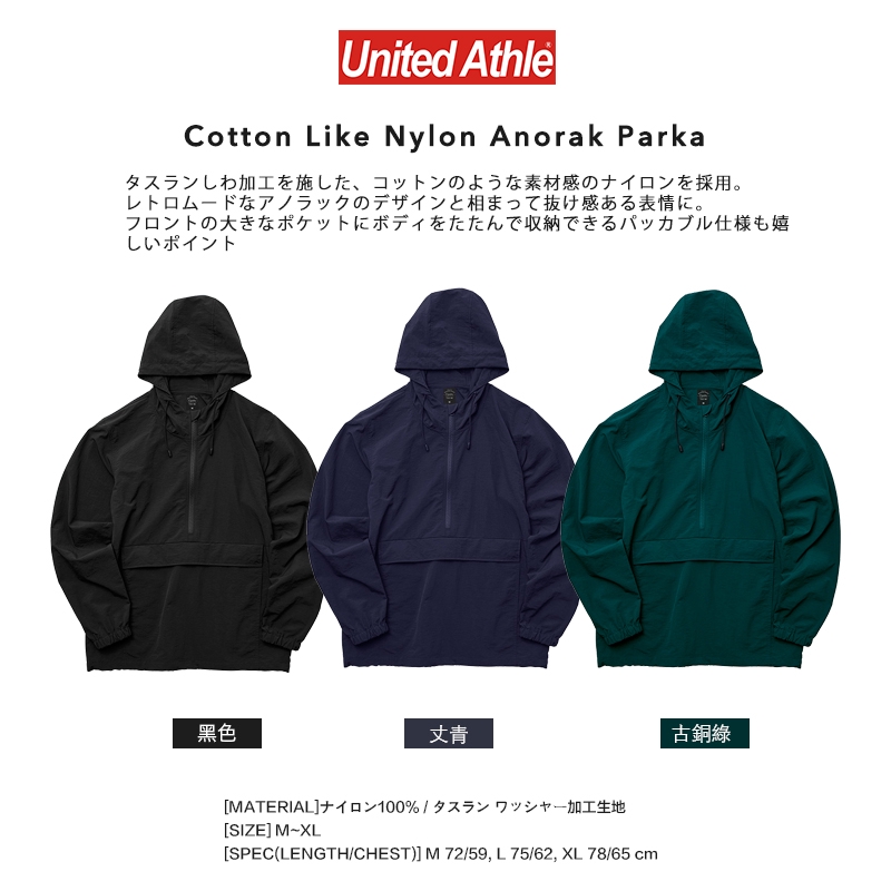 UnitedAthle 日本 工裝棉花狀尼龍 連帽防風上衣 7211型【UA7211】附收納袋