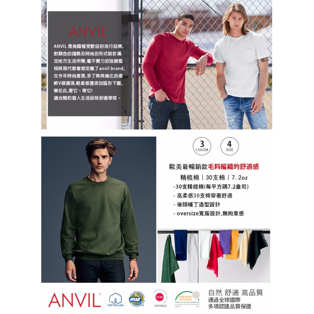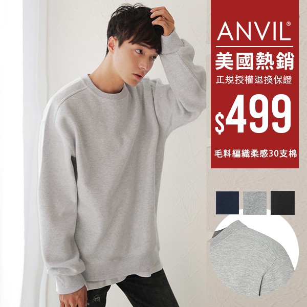 ANVIL 美國棉內刷毛素色大學T 情侶款 71000型 【AN71000】現貨+預購