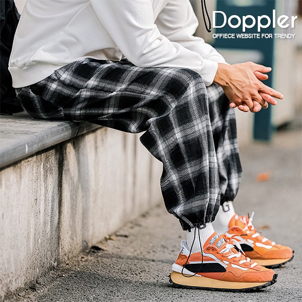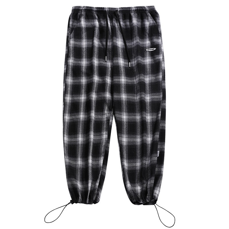 格紋褲 韓版黑白格紋縮口抽繩休閒褲 羅紋伸縮腰圍 【TJH2063】現貨+預購