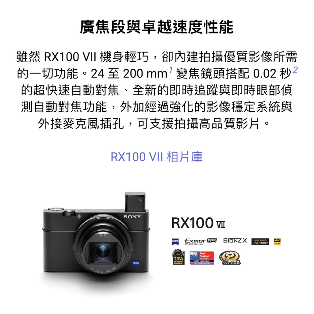 【SONY 索尼】DSC-RX100M7 RX100 VII 類單眼相機 (公司貨)