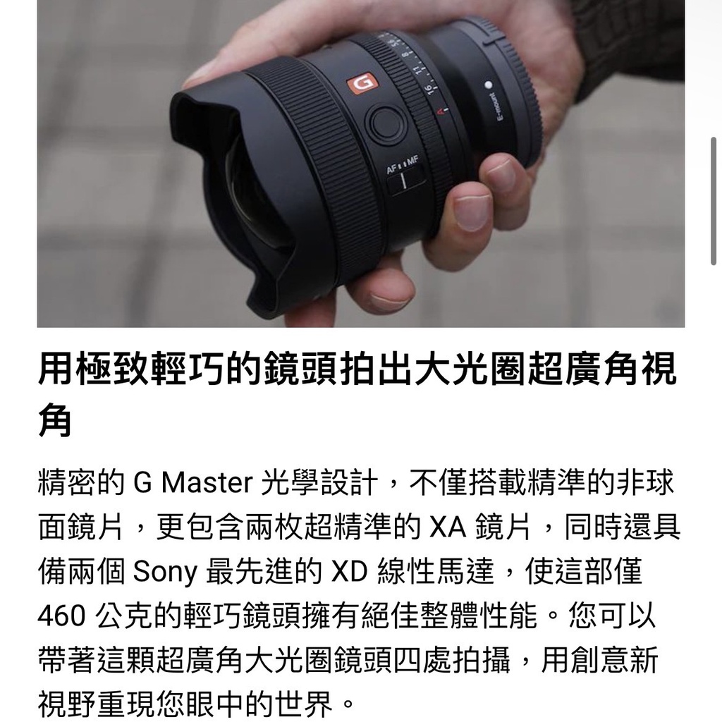 【SONY 索尼】SEL14F18GM FE 14mm f/1.8 GM 廣角定焦鏡 (公司貨)