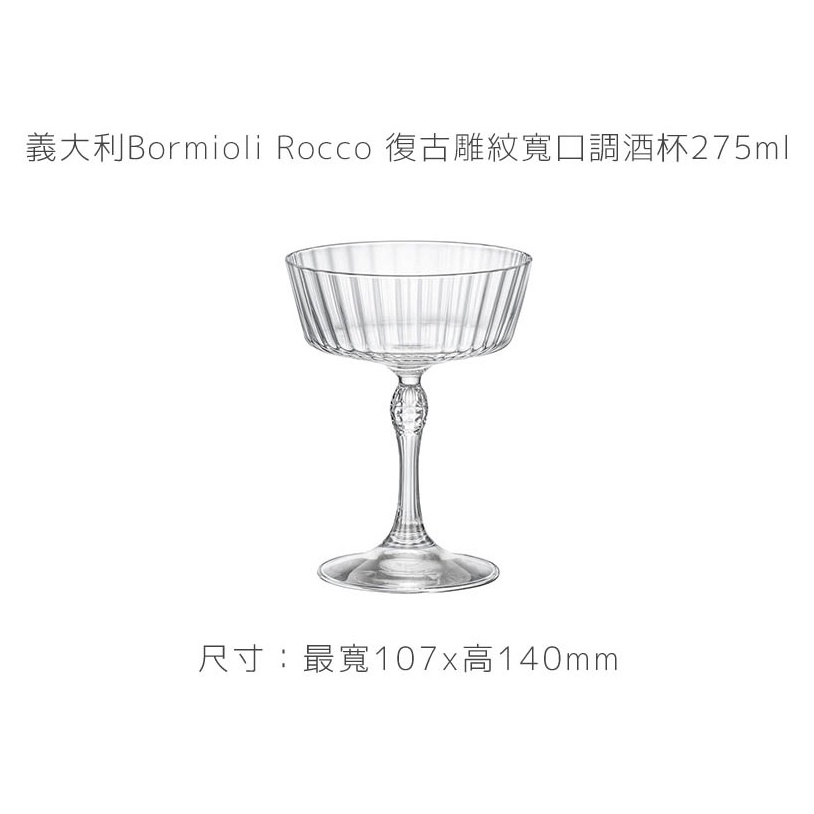 義大利Bormioli Rocco 復古雕紋寬口調酒杯275ml《拾光玻璃》
