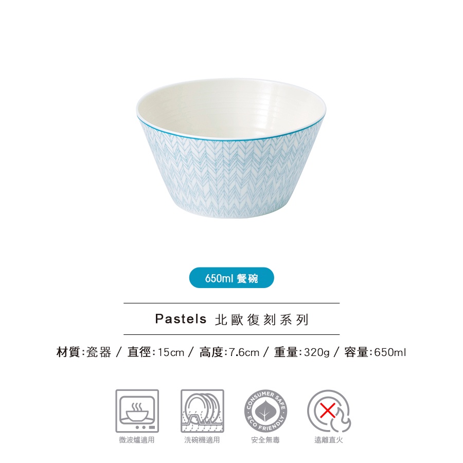【英國Royal Doulton】皇家道爾頓 Pastels北歐復刻 15cm餐碗 (粉彩藍調)《拾光玻璃》飯碗