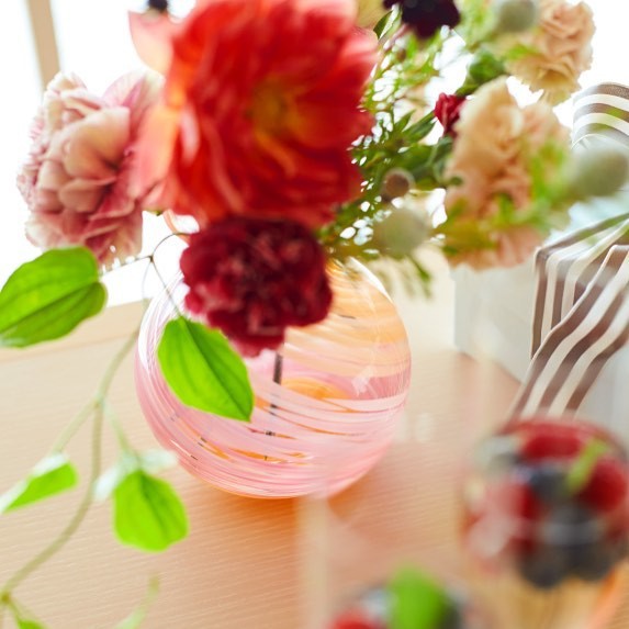 【日本津輕】手作彩手鞠花瓶-共4款《拾光玻璃》 玻璃瓶 花器 插花瓶