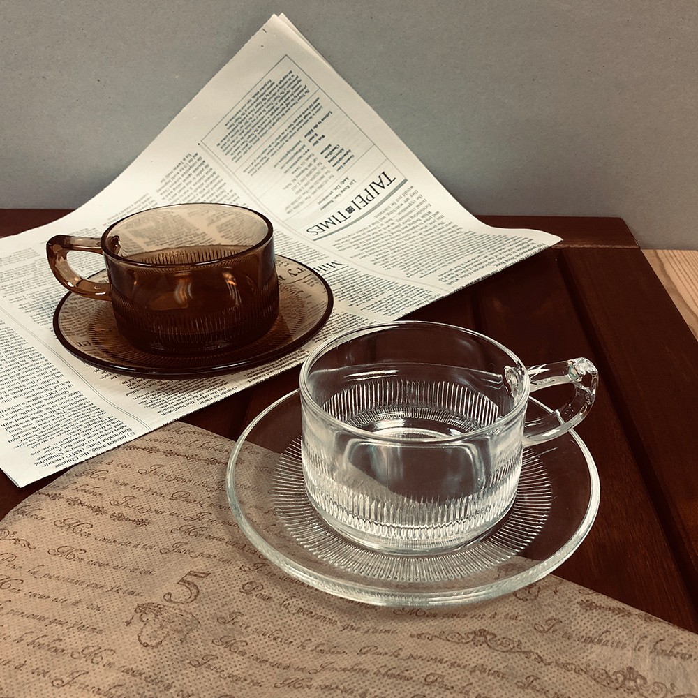 【日本廣田硝子】昭和珈琲琥珀玻璃杯盤組200ml-共2色《拾光玻璃》 咖啡杯 杯子 玻璃杯
