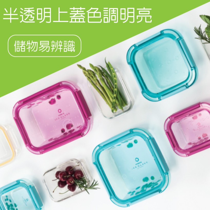 【韓國KOMAX】Ice Glass冰鑽方型玻璃保鮮盒380ml-共2色《拾光玻璃》 便當盒 玻璃盒