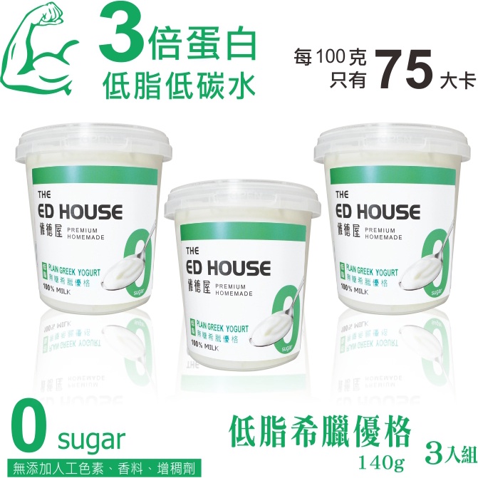 雅德屋 低脂無糖希臘優格【140g獨享杯】3入組