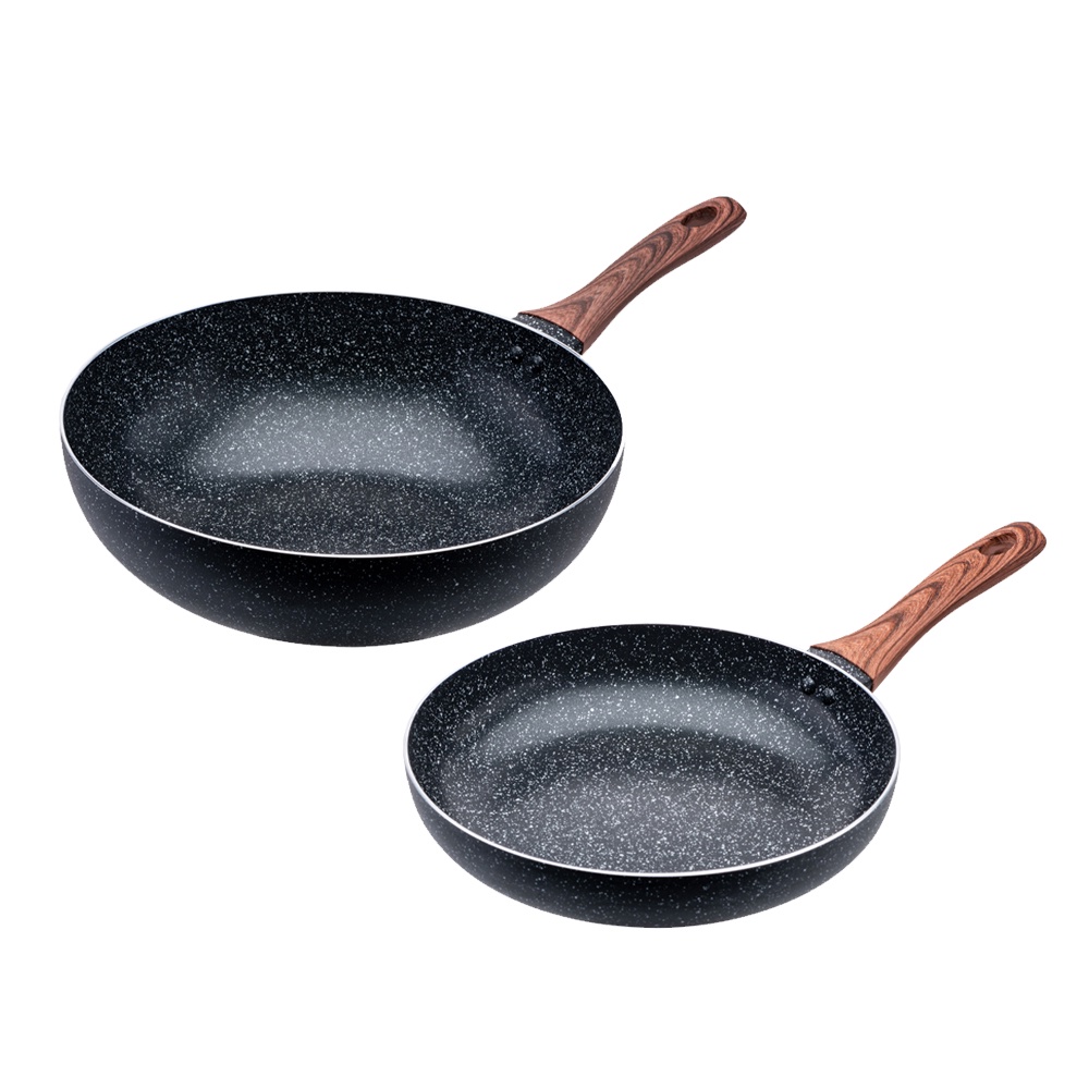 鍋寶 原礦大理石不沾雙鍋組(32炒+28平) IH/電磁爐/瓦斯爐適用