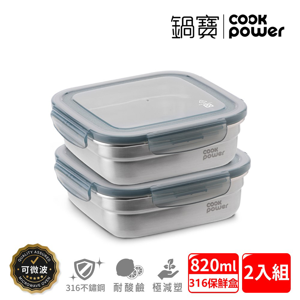 鍋寶 可微波316不鏽鋼正方形保鮮盒820ml-2入組