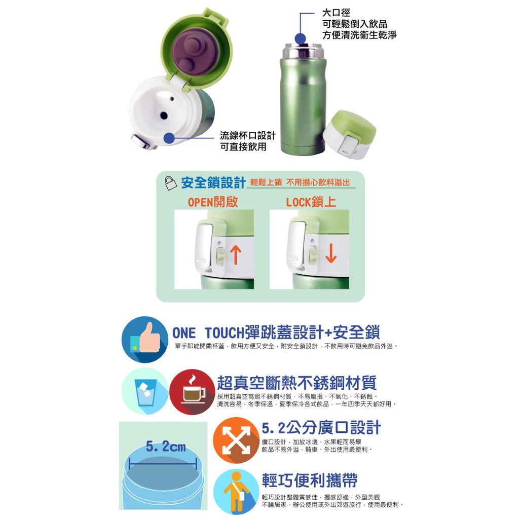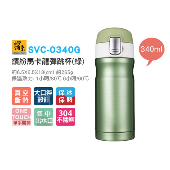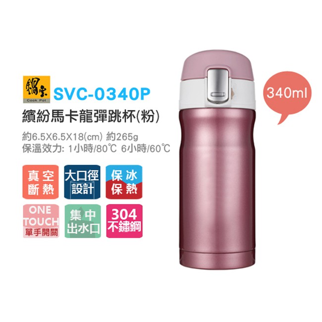 鍋寶 304繽紛馬卡龍彈跳保溫杯 340ml (二色任選)_庫存良品