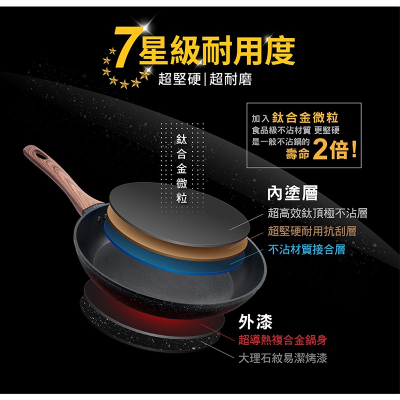 鍋寶 鈦頂極不沾炒鍋 30cm-6件組(含可立鍋蓋、餐廚四件組)
