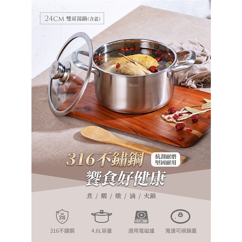 鍋寶 Eternal系列316不鏽鋼雙耳湯鍋24cm(附蓋)