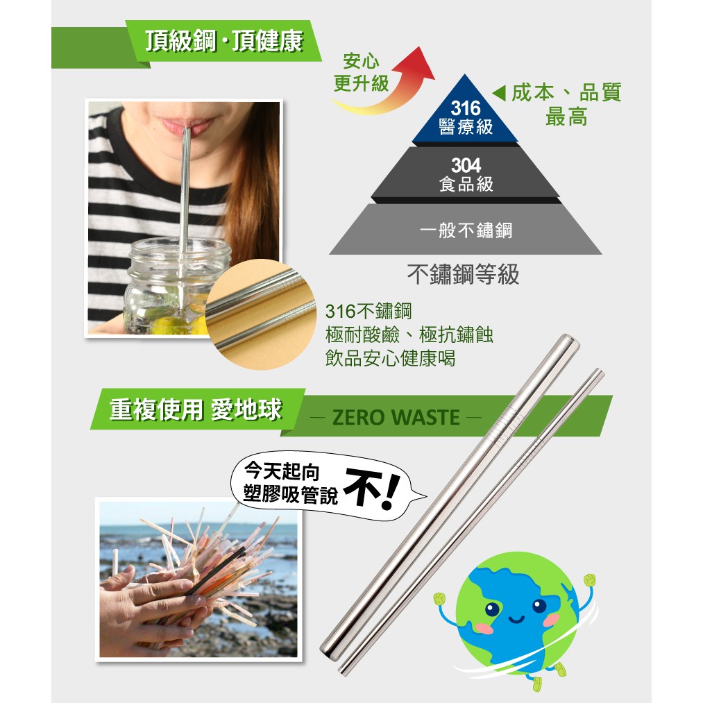 鍋寶 316不鏽鋼吸管組-5件式(粗/細吸管+清潔刷+封膜刀片+束口袋)