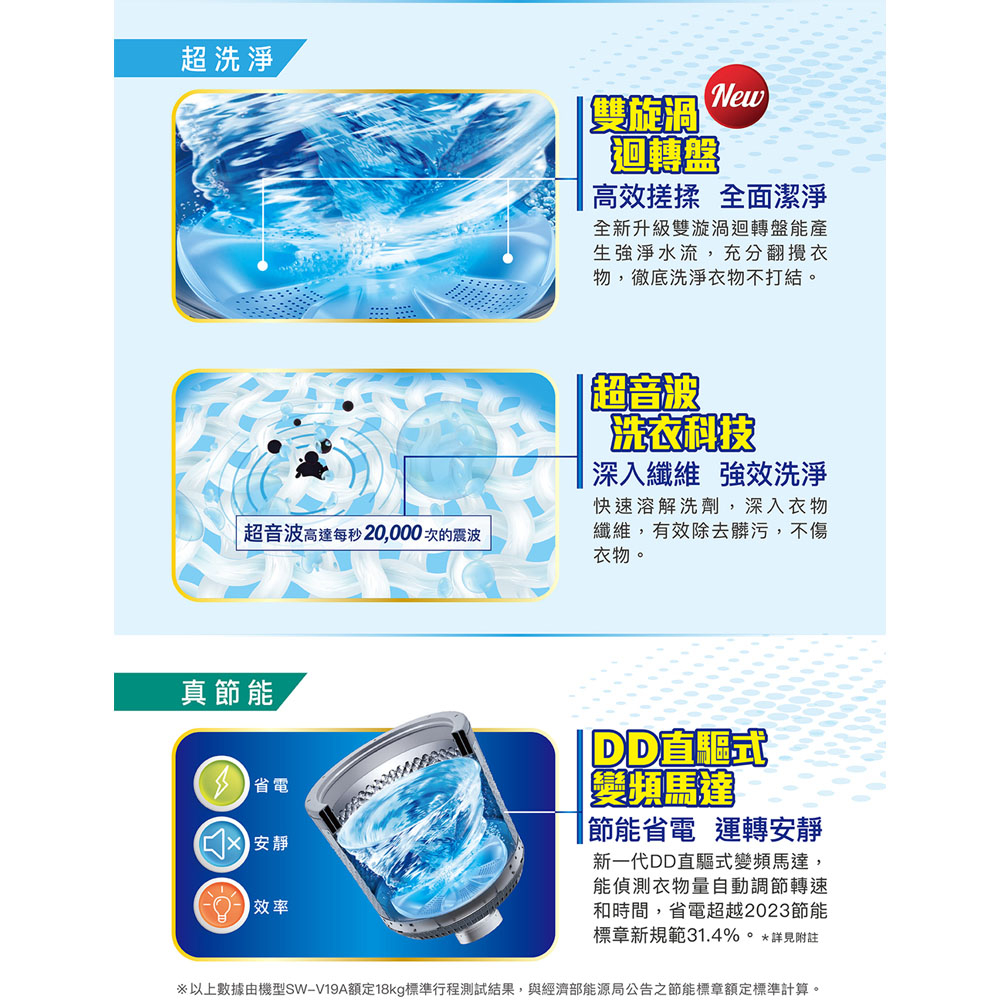 SANLUX 台灣三洋 18公斤 DD直流變頻超音波洗衣機 玫瑰金 SW-V19A
