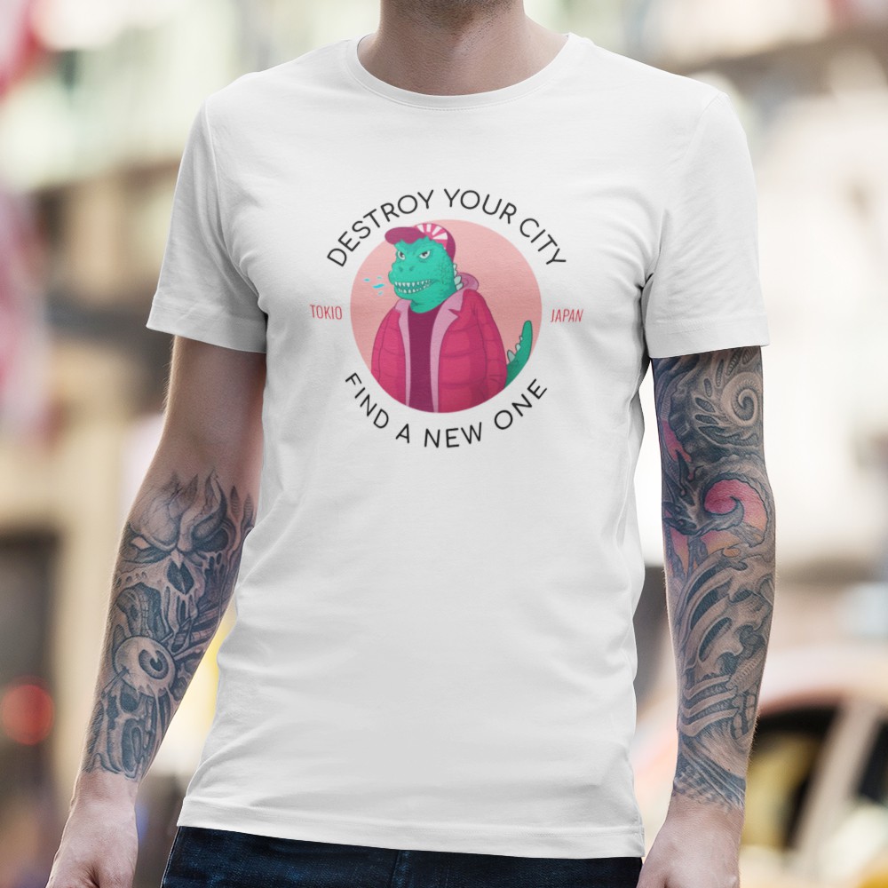 DESTROY CITY KAIJU 中性短袖T恤 白色 (快速出貨)純棉服飾GODZILLA浮世繪波浪恐龍暴龍哥吉拉