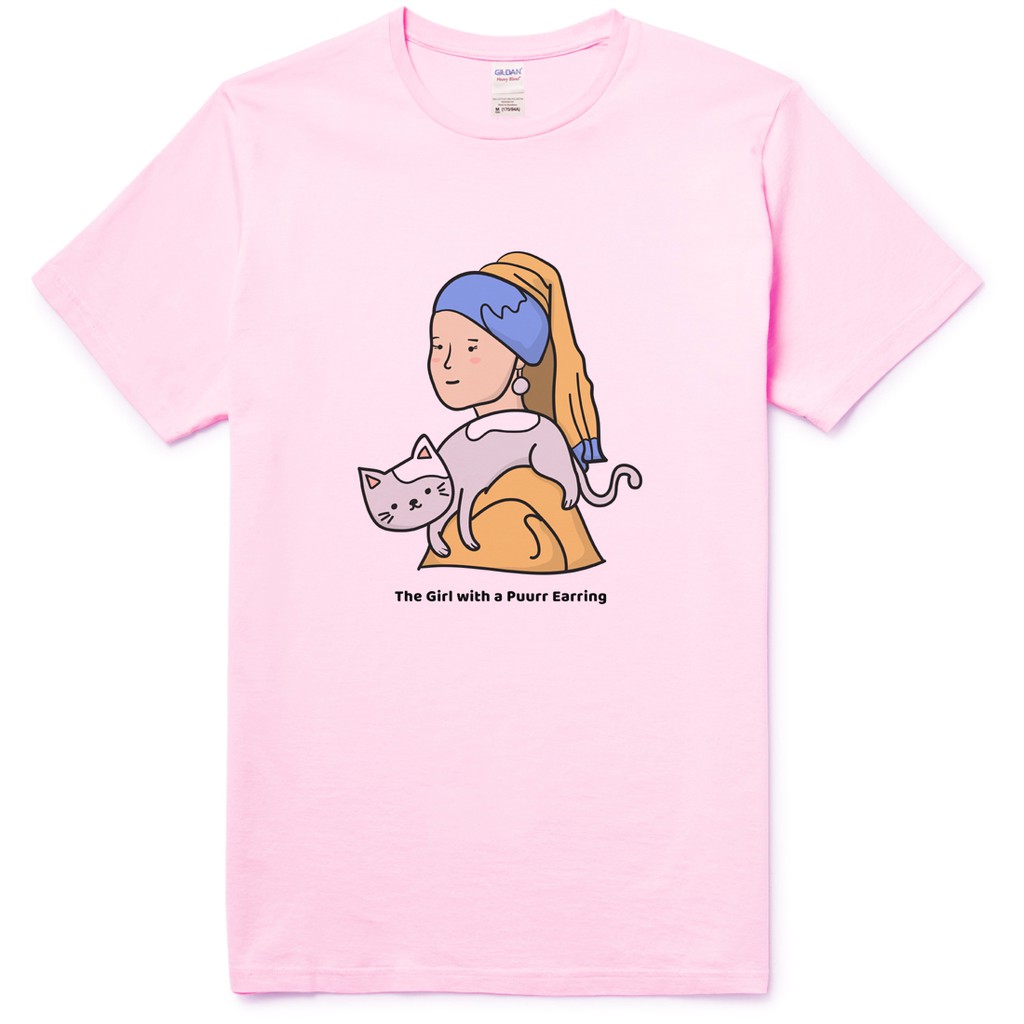 Girl with a Puurr Earring 中性短袖 5色 (現貨)戴珍珠耳環的少女和貓咪名畫玩翻惡搞油畫藝術美