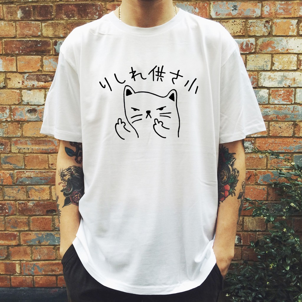 貓咪也不爽 中性短袖T恤 7色 (現貨) りしれ供さ小偽日文你是咧講三小是在哈囉網紅潮T時事網路用語中指