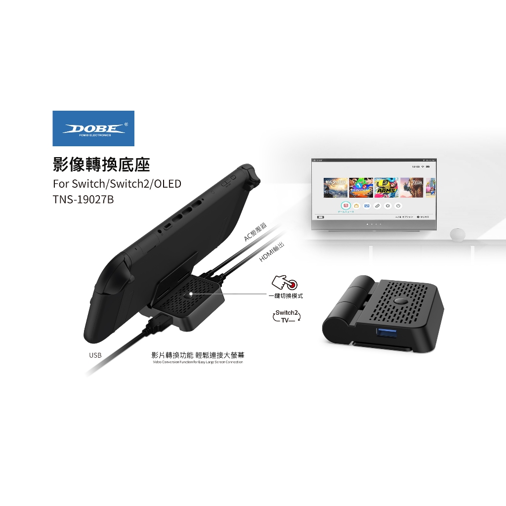 DOBE NS Switch 2 可摺疊 視訊轉接器【現貨 免運】HDMI 訊號傳輸 充電底座 視頻轉接器 支架 NS2