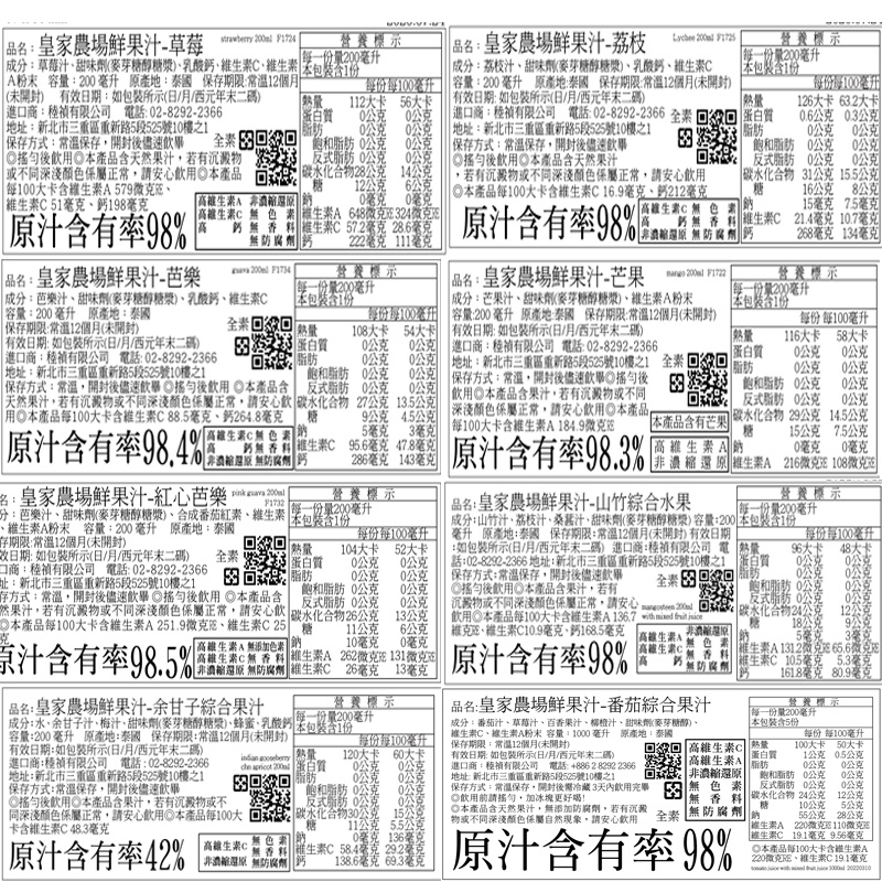 【泰國皇家農場】鮮榨 荔枝汁 草莓汁 百香果汁 芭樂汁 荔枝汁 芒果汁 200/1000ml 非濃縮還原