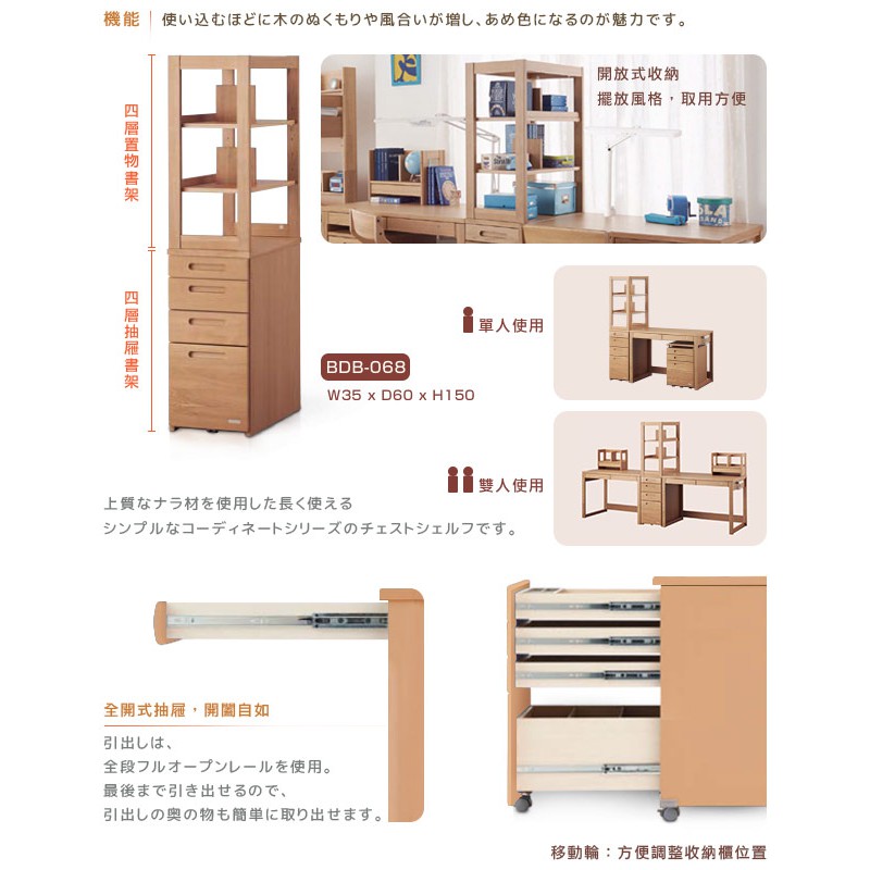 日本兒童書桌第一|KOIZUMI|BEENO四抽開放書櫃BDB-068|原價26800特價21800