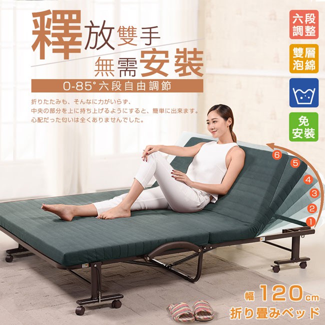 潮傢俬|哲學之道6段收納折疊床-幅120cm| 灰|可拆洗免安裝|贈防塵套/小枕頭|原價8800特價6580