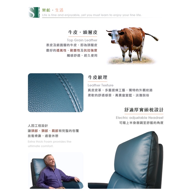 福利品|原價39800特價18800|Grenville格倫維爾勛爵半牛皮電動躺椅-皇室藍|專櫃展示品僅2組|停產出清