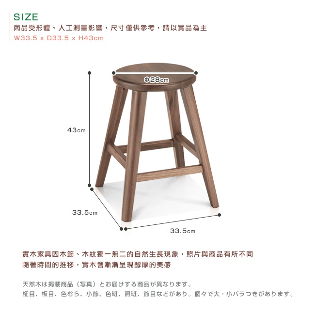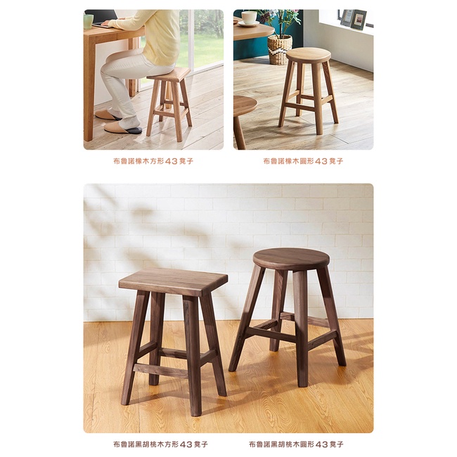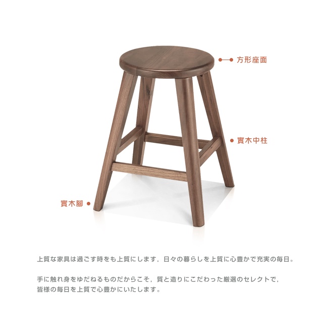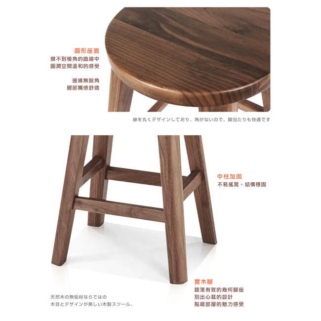 週年慶特惠中|日本大丸家具|BRUNO布魯諾黑胡桃木圓形43凳子|「超低甲醛」|原價5680特價3680