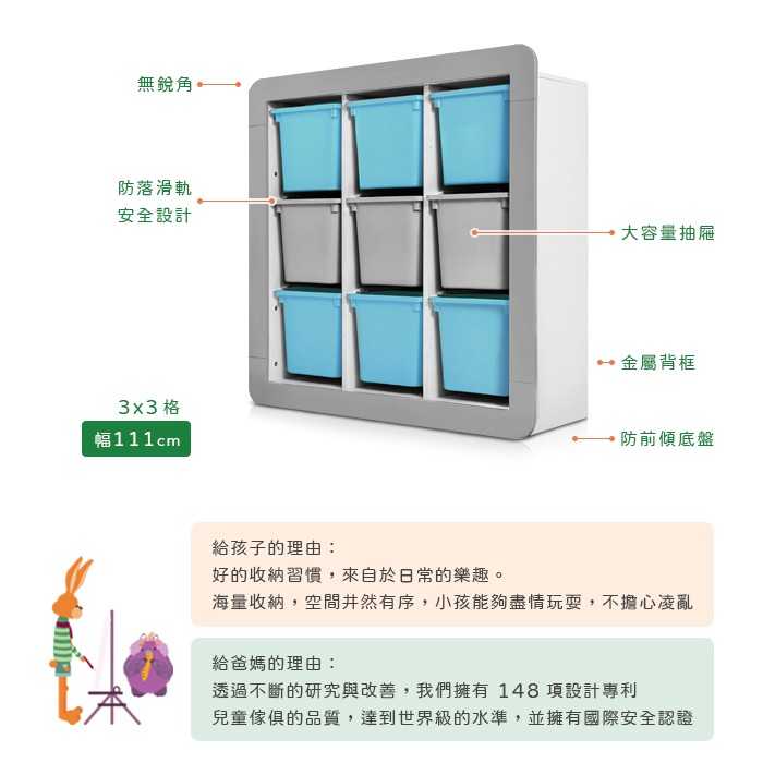 停產出清|comta kids|STORI思多益九宮格收納櫃幅111cm 2色可選|原價15000特價8800