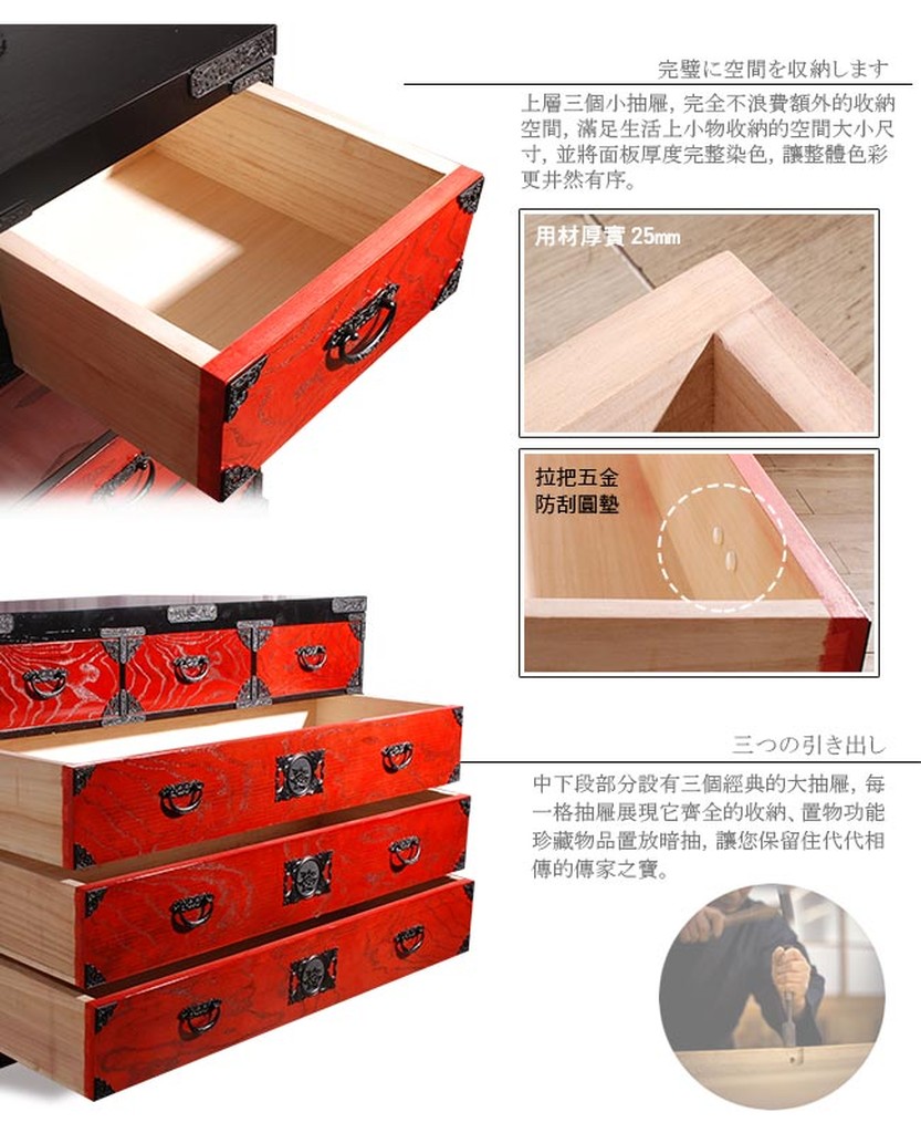 絕版品|桐簞笥|雋臻傳世-頂級六階整理簞笥(赤塗)幅120cm|僅1組|原價36800特價28800