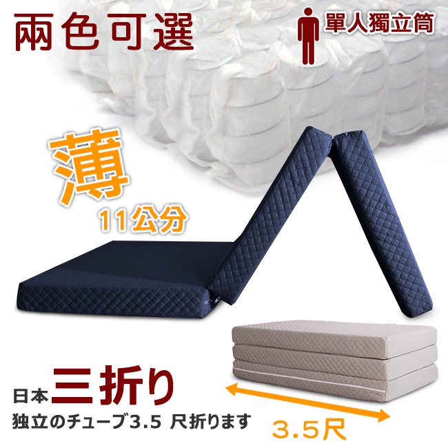 原創日本|附贈提袋|二代目日式三折獨立筒彈簧床墊3.5尺 兩色可選|厚11cm|原價7580特價6380|中鋼原料