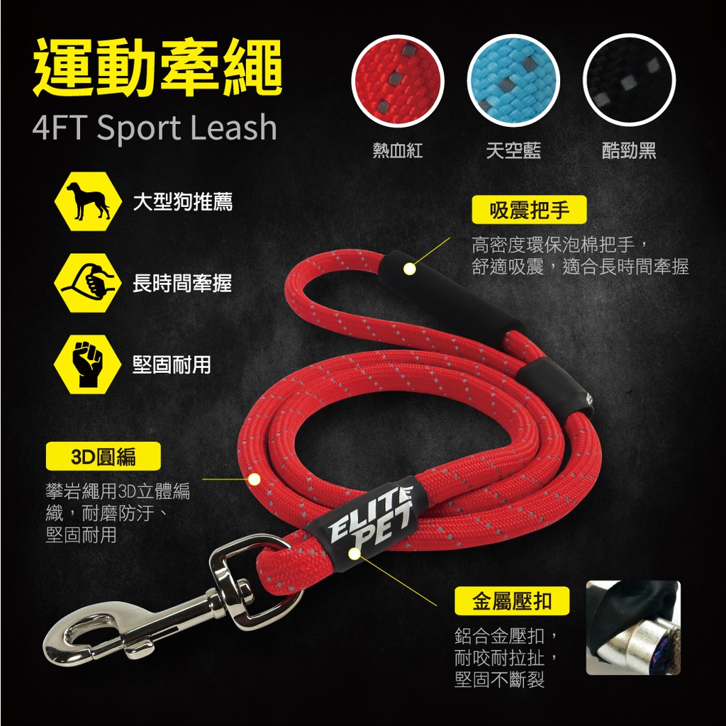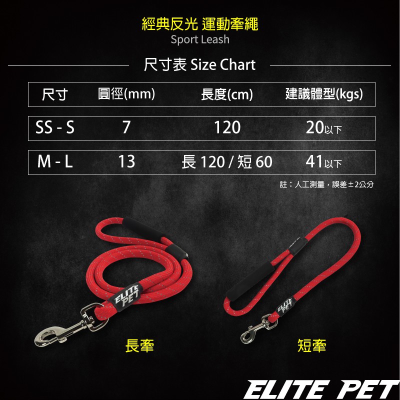 ELITE PET 艾利沛 經典反光系列 120CM運動牽繩 XS-L 5-40公斤
