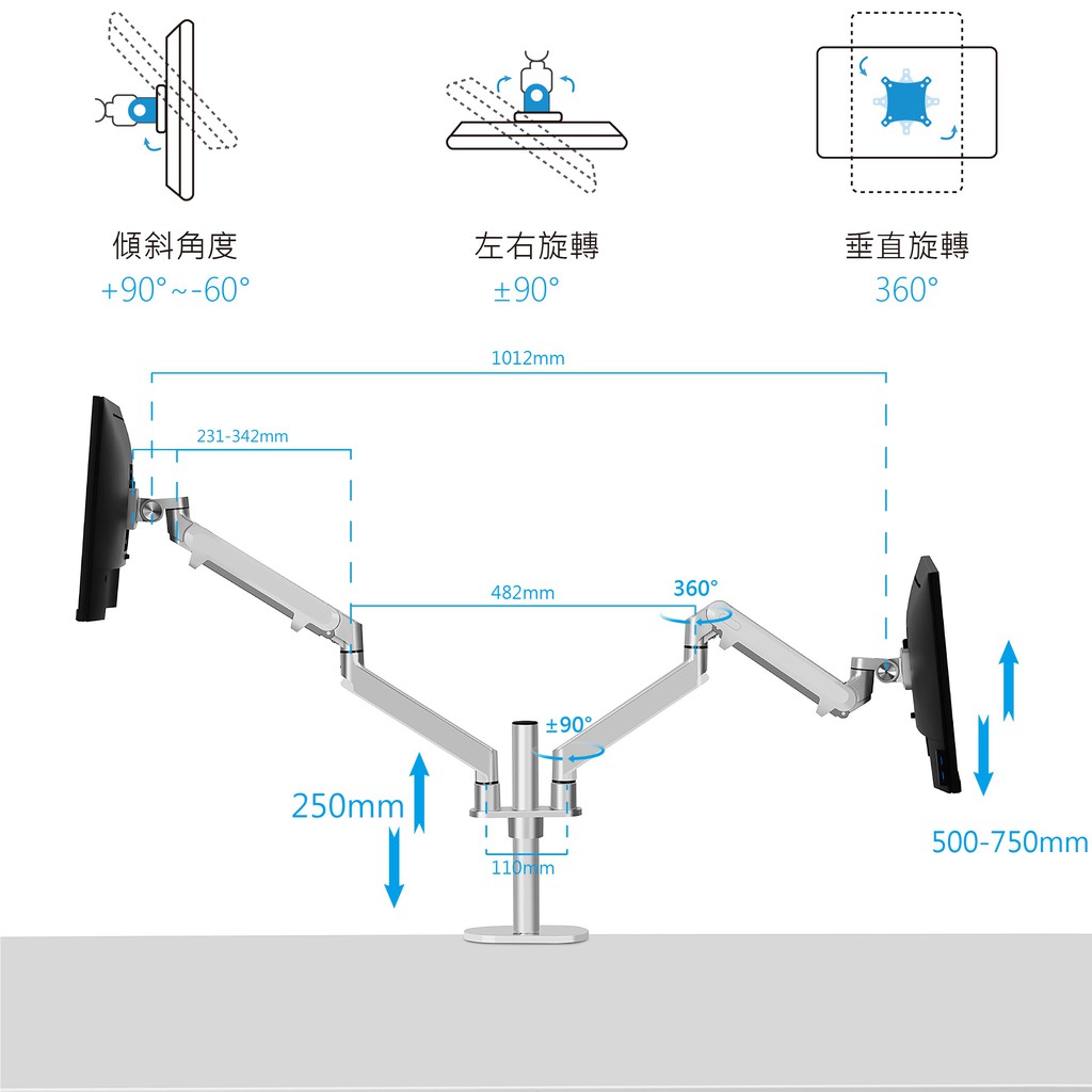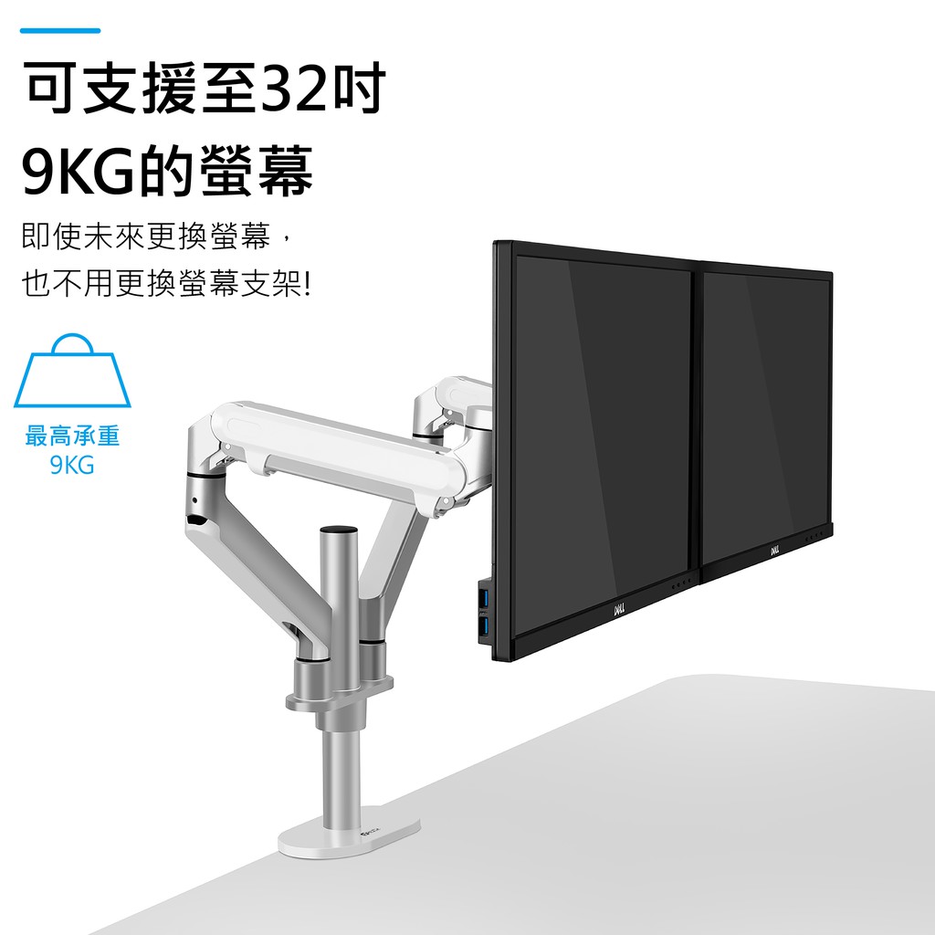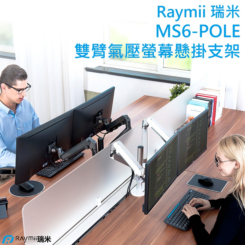 瑞米 Raymii MS6-POLE 氣壓式 鋁合金 32吋 電腦螢幕支架 雙螢幕支架 螢幕架 顯示器支架