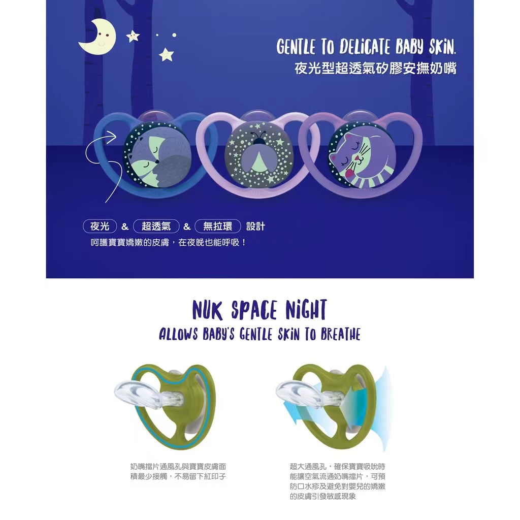 德國 NUK SPACE夜光型超透氣矽膠安撫奶嘴 附奶嘴盒