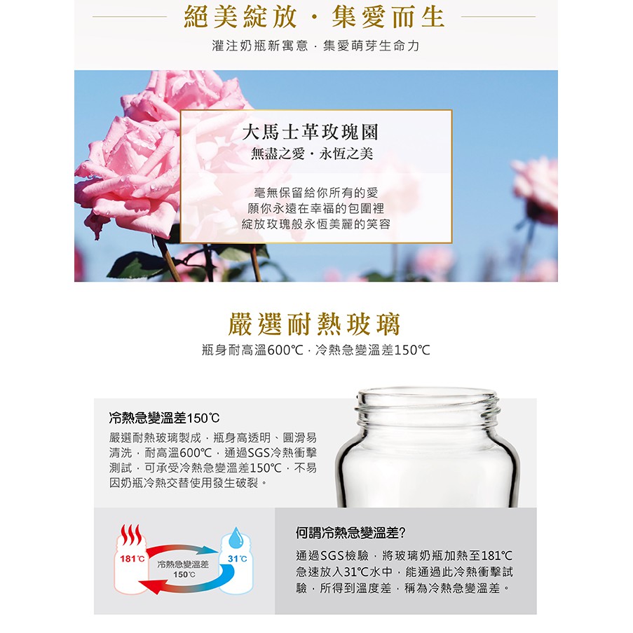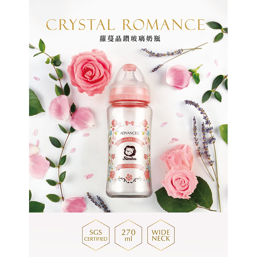 小獅王辛巴 蘿蔓晶鑽寬口玻璃大/小奶瓶(香草/玫瑰/艷陽) 180ml/270ml