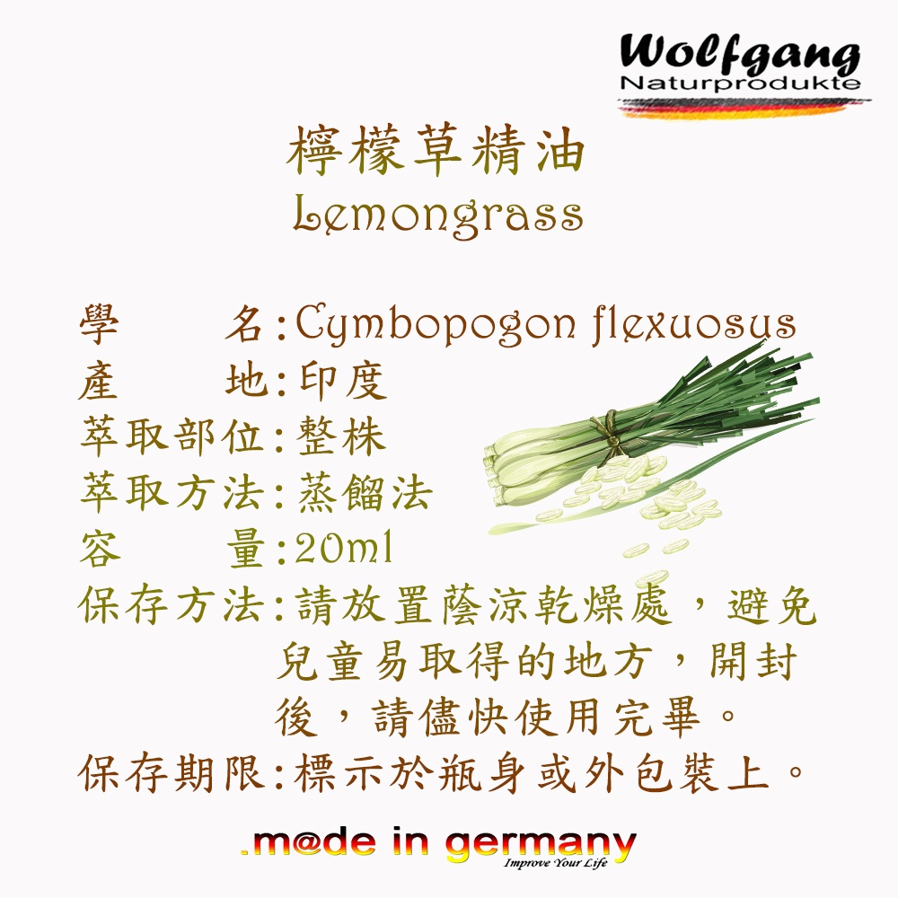 德國Wolfgang 檸檬草精油 Lemongrass 20ml