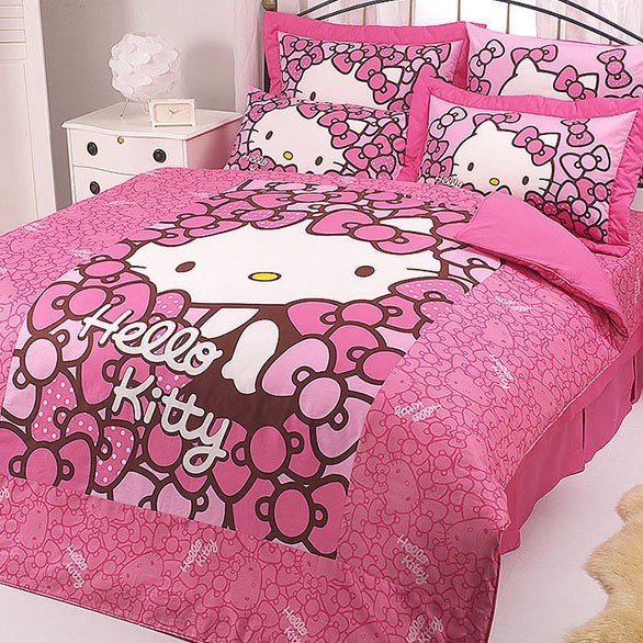 HELLO KITTY 我的RIBBON時尚 粉 精梳棉 問貨再下單 單人 雙人 加大 特大 床包 涼被 兩用被 床罩