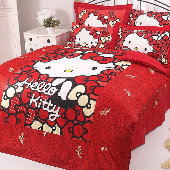 HELLO KITTY 我的RIBBON時尚 紅 精梳棉 問貨再下單 單人 雙人 床包 涼被 薄被套 兩用被 斷貨出清