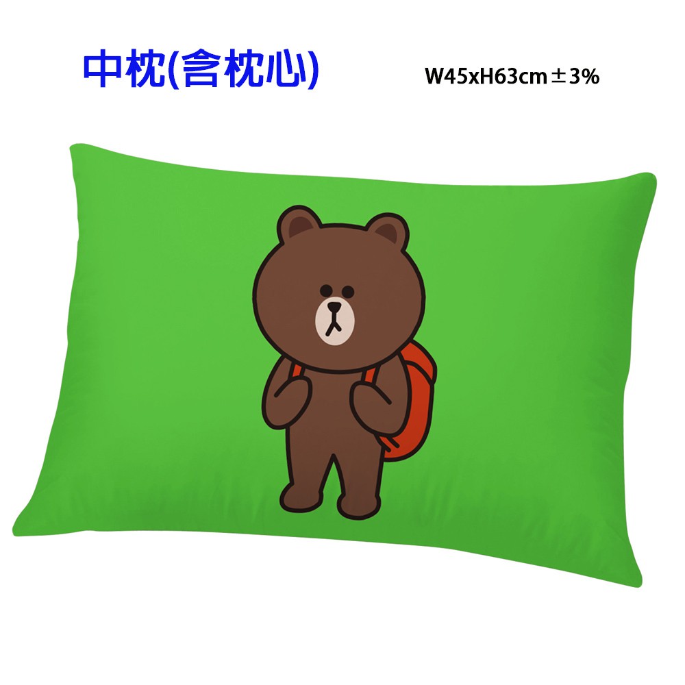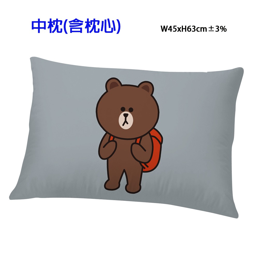 LINE 熊大愛自拍 中枕 枕頭 枕芯含枕頭套 可拆洗 正版授權 台灣製造 兩色可選