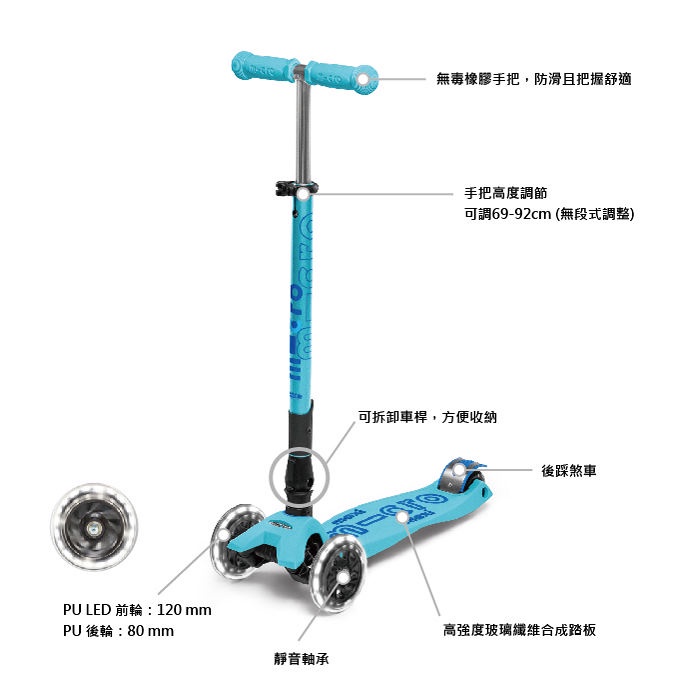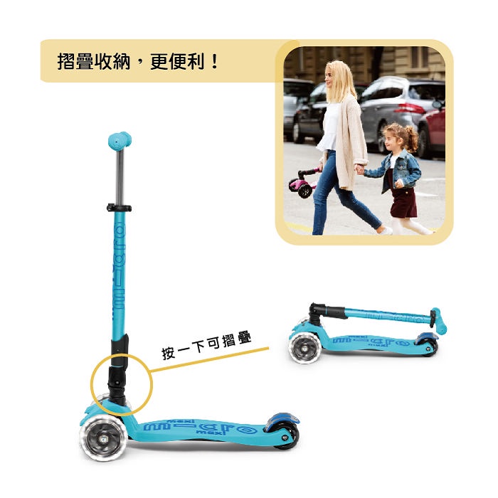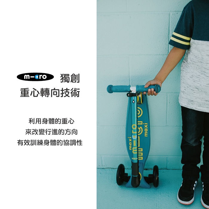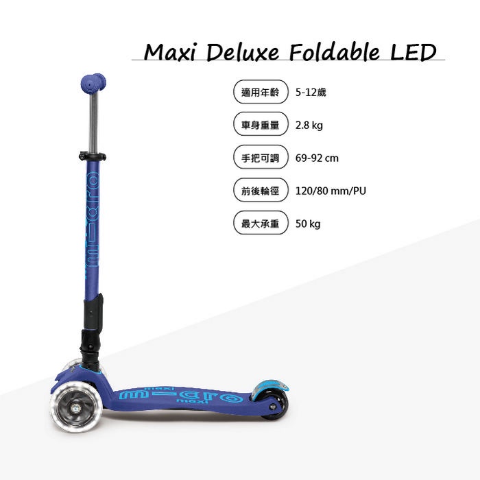 【瑞士Micro】官方原廠貨 Maxi Deluxe foldable 折疊版 LED前輪發光 ( 5-12歲 ) 共5