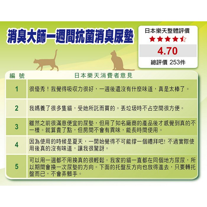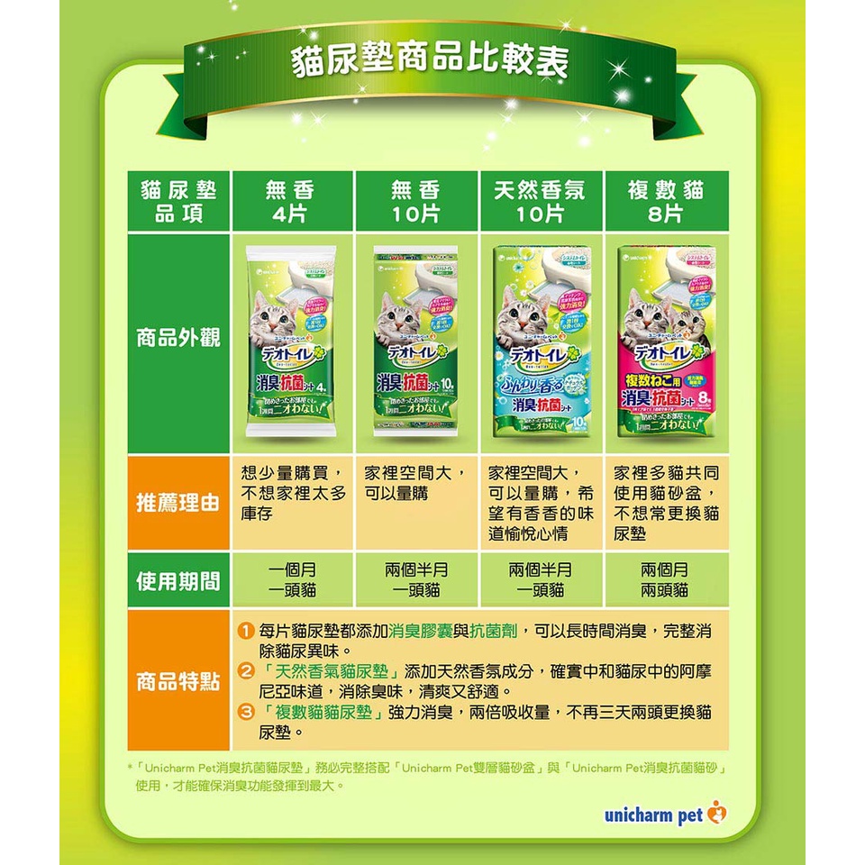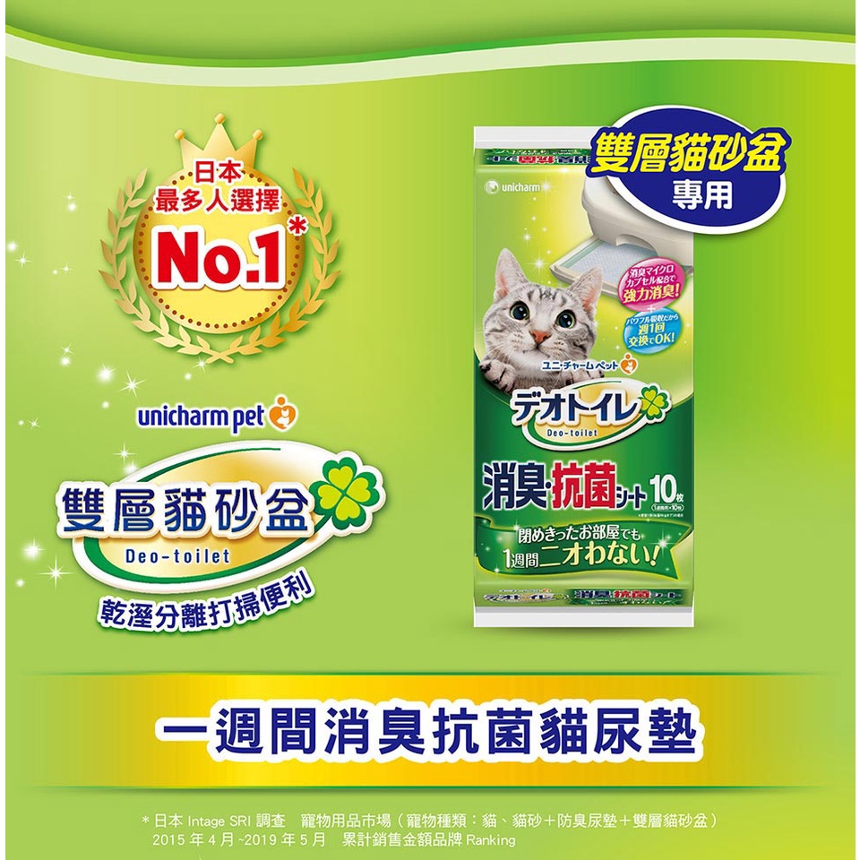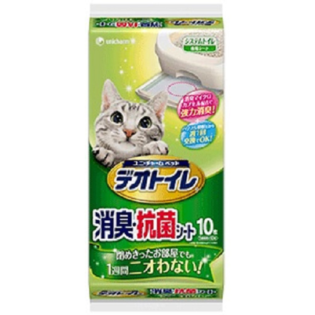 日本 嬌聯 Unicharm 一週間抗菌消臭吸尿墊/一週消臭墊(天然香氣) 貓砂盆尿墊/10片入