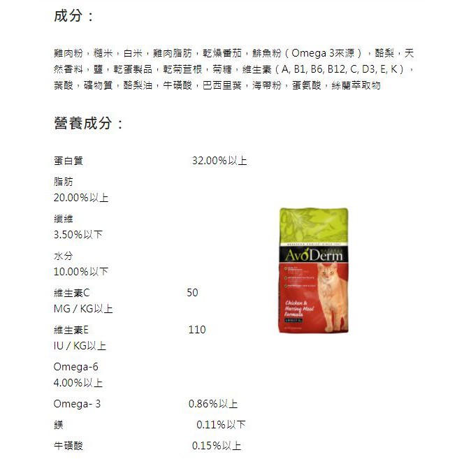 愛酪麗AvoDerm 貓飼料 無穀成貓系列 雞肉+鲱魚