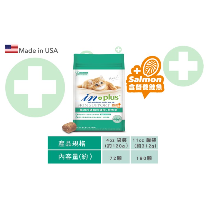 IN-Plus 貓用 全方位皮膚毛髮專業寵物營養品 超濃縮卵磷脂+鮭魚油