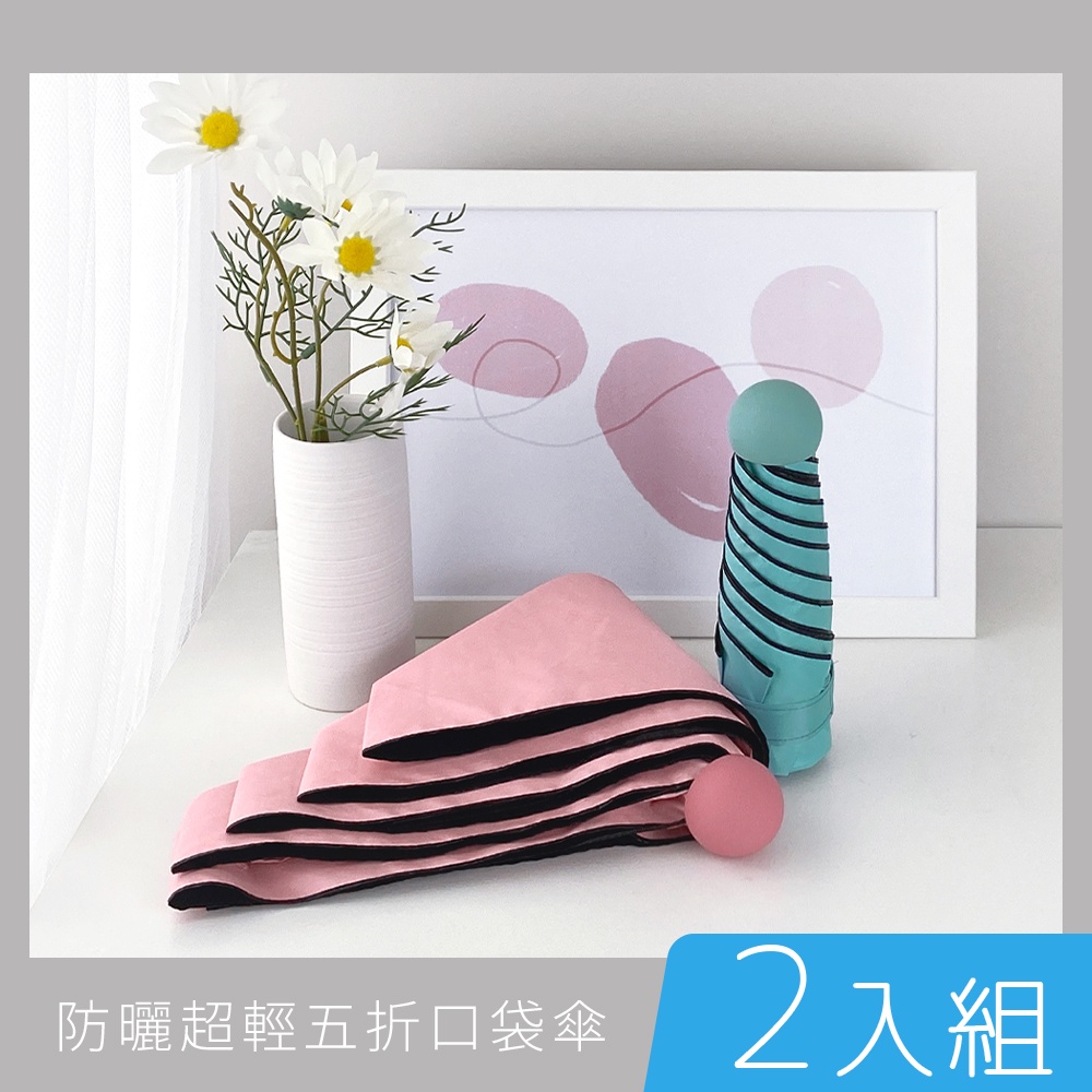 雨之情【2入】防曬超輕五折口袋傘-雨傘 傘 防曬 uv100 五折輕量傘 口袋傘 小傘 晴雨兩用傘 摺疊傘 度假套裝