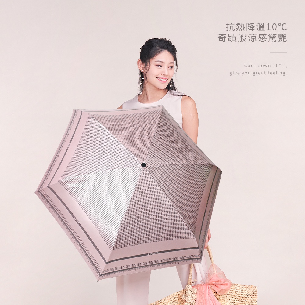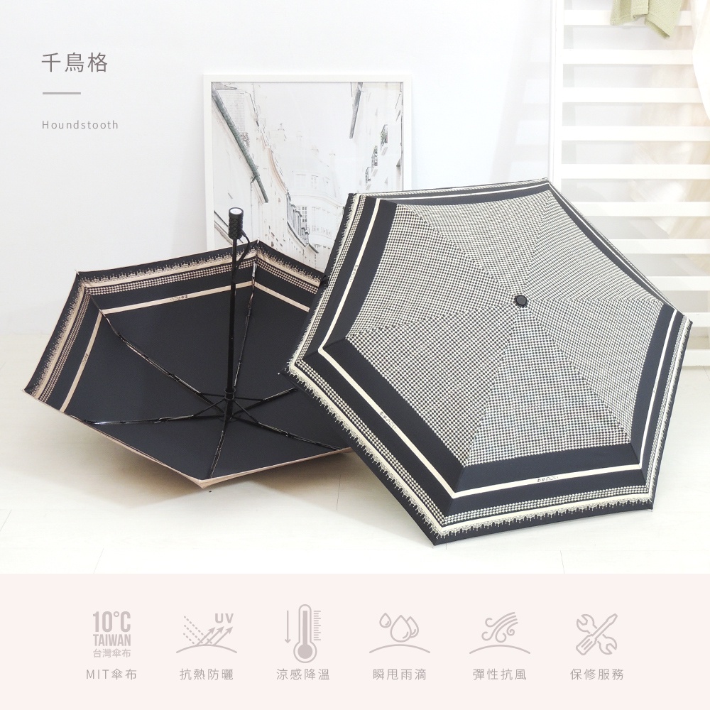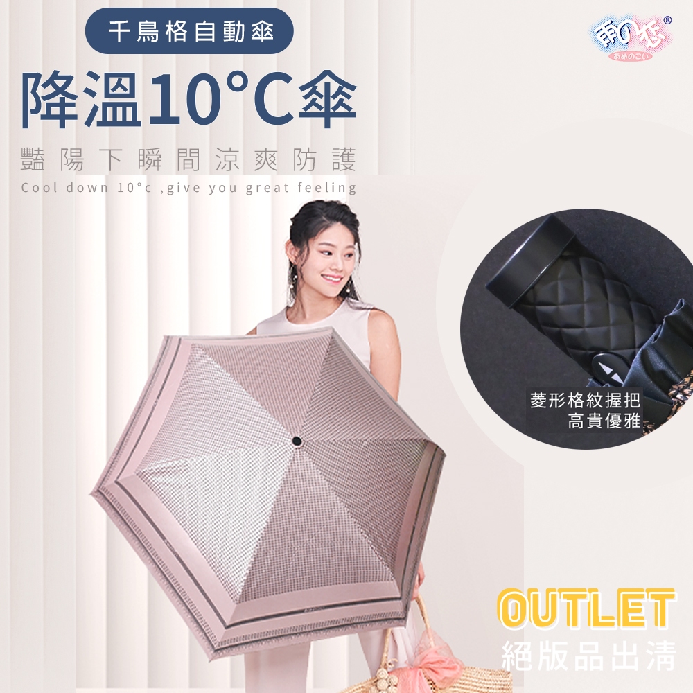 日本雨之戀 降溫10℃鈦奈米自動傘千鳥格-自動傘 雨傘 防曬 涼感 抗紫外線 涼感 UPF50+ 夏季出遊 遮陽 換季