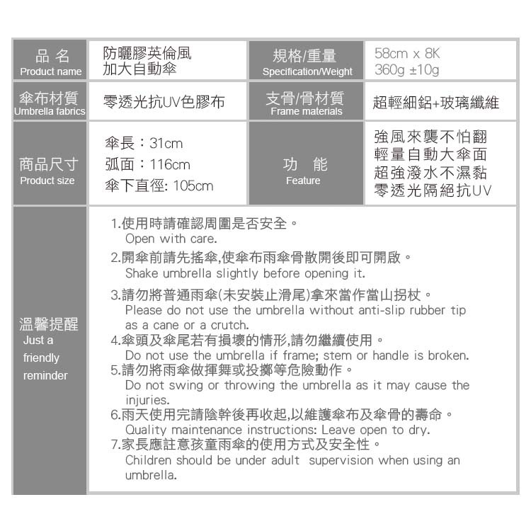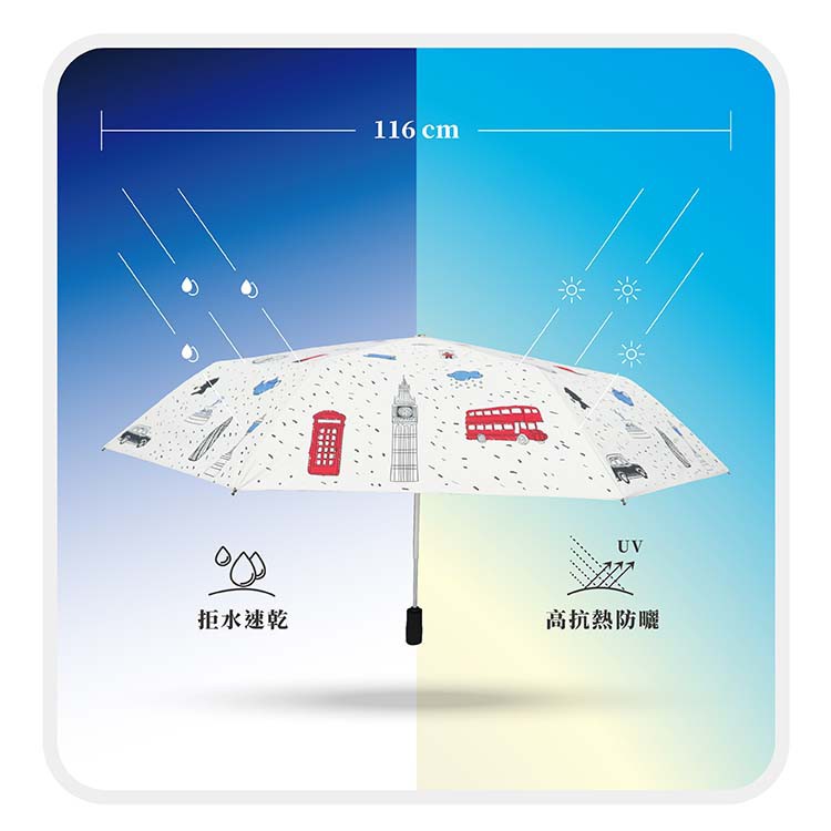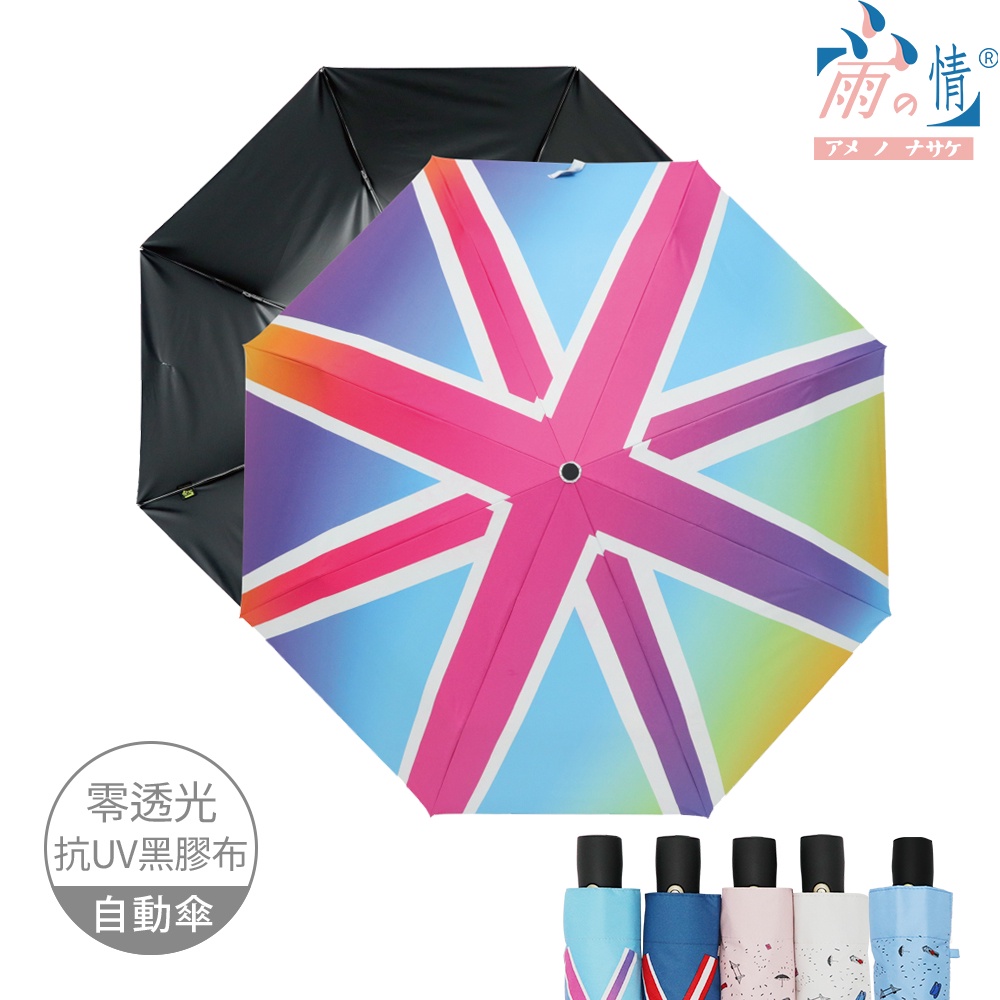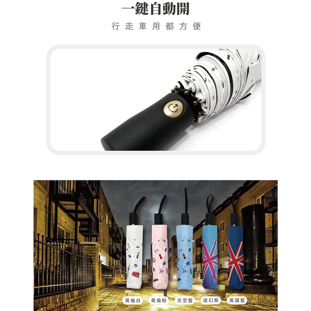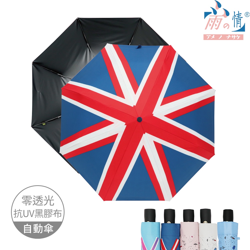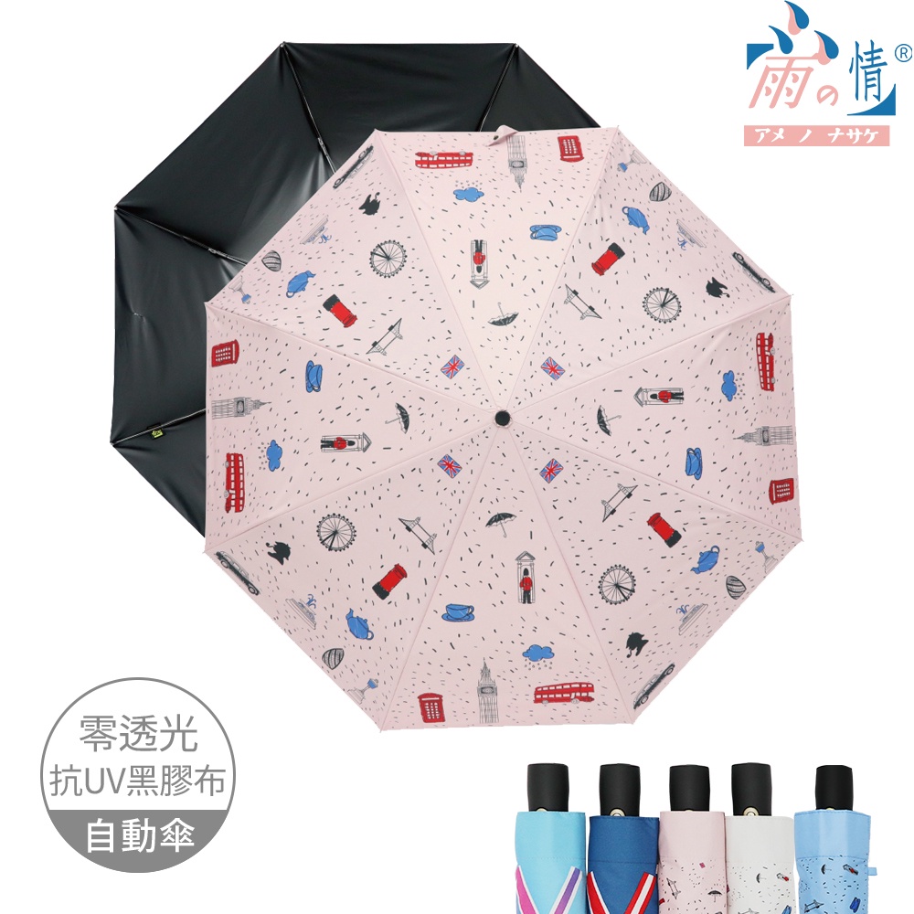雨之情 蝦幣10%回饋 防曬膠英倫風加大自動傘-加大傘面 自動傘 抗UV 零透光 輕巧大傘面 手繪風 英倫風 防曬抗UV