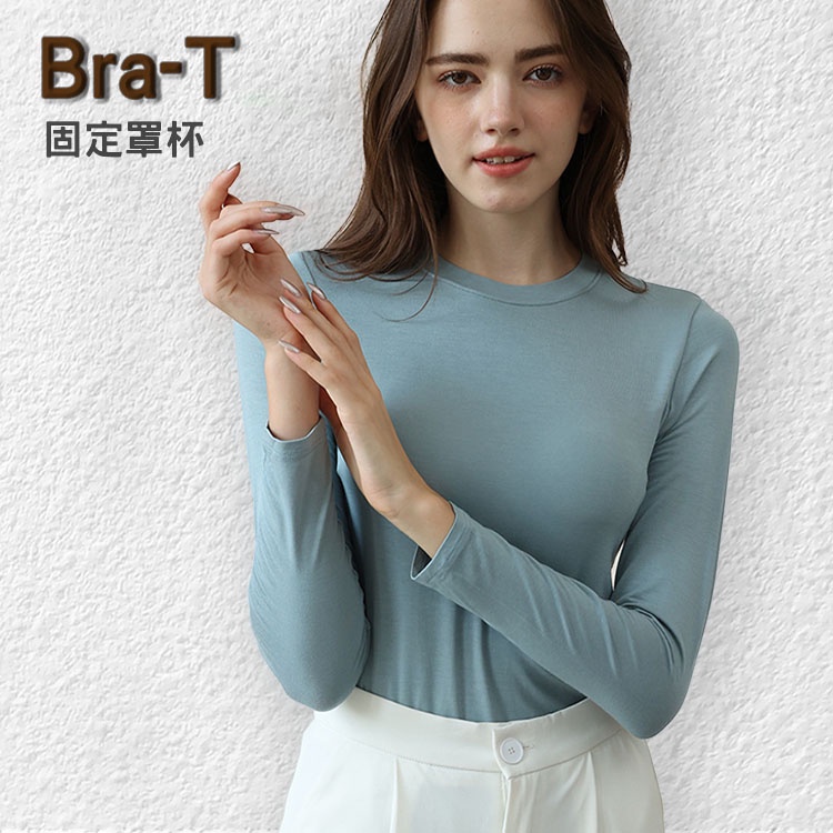 《牛奶絲BRA圓領T恤》 32~42吋胸圍 單穿外出 舒服集中 免穿內衣-T711-2