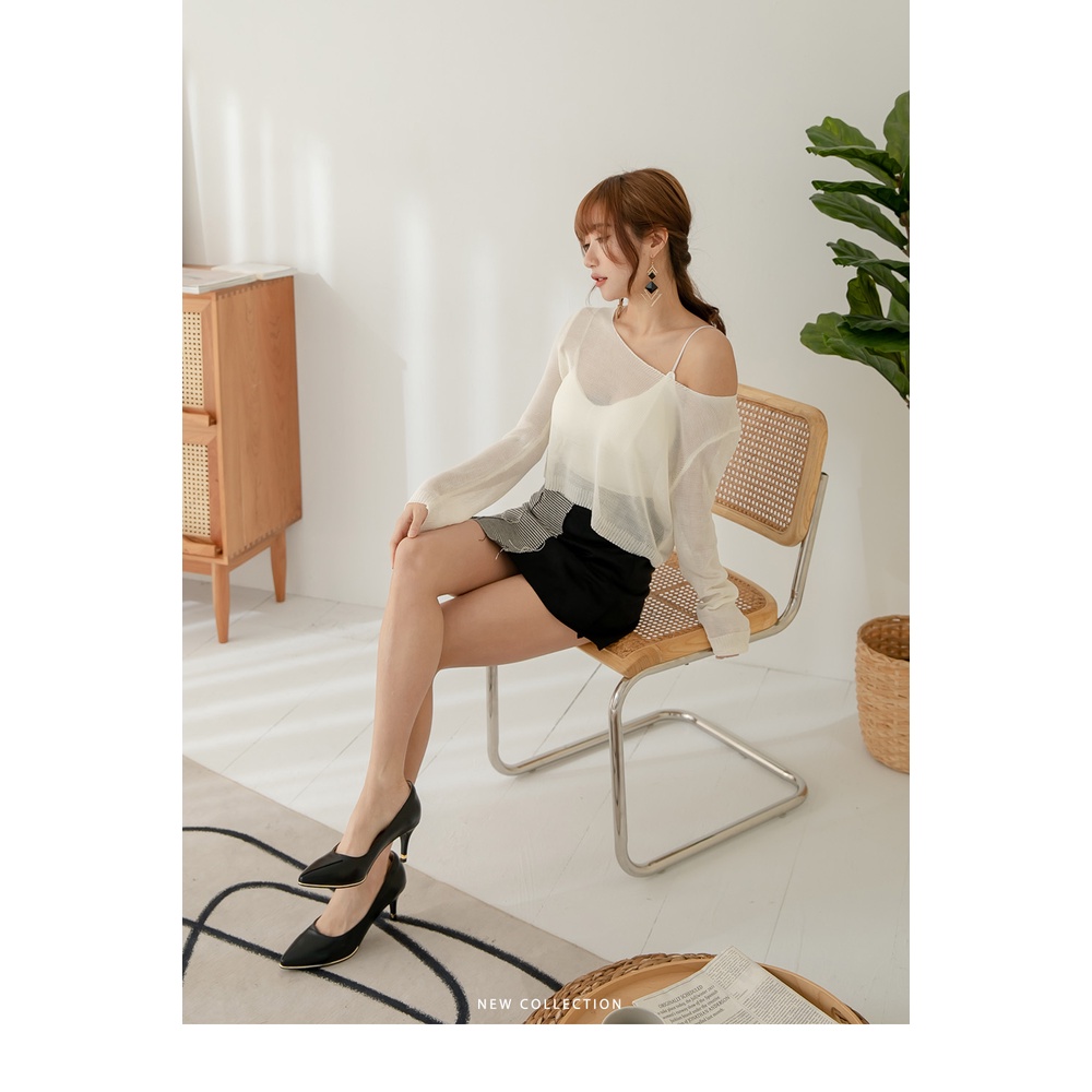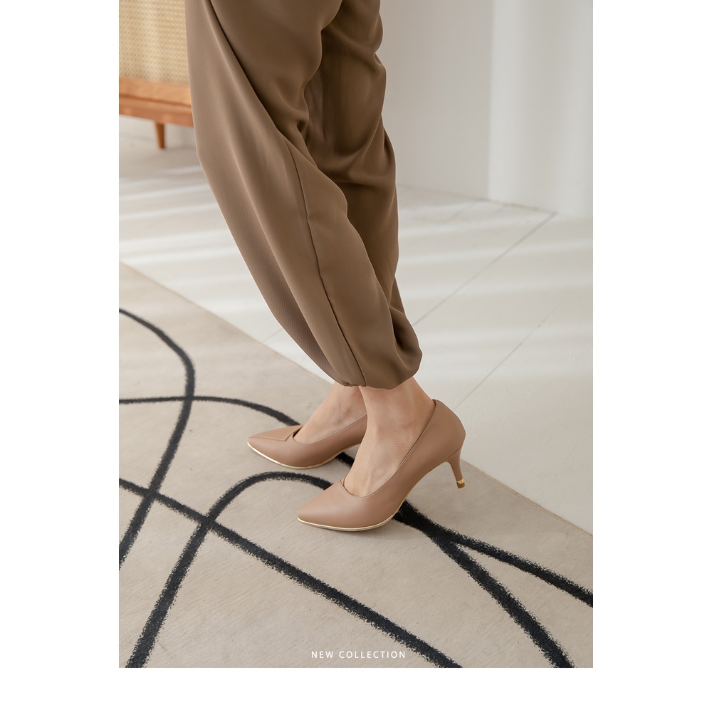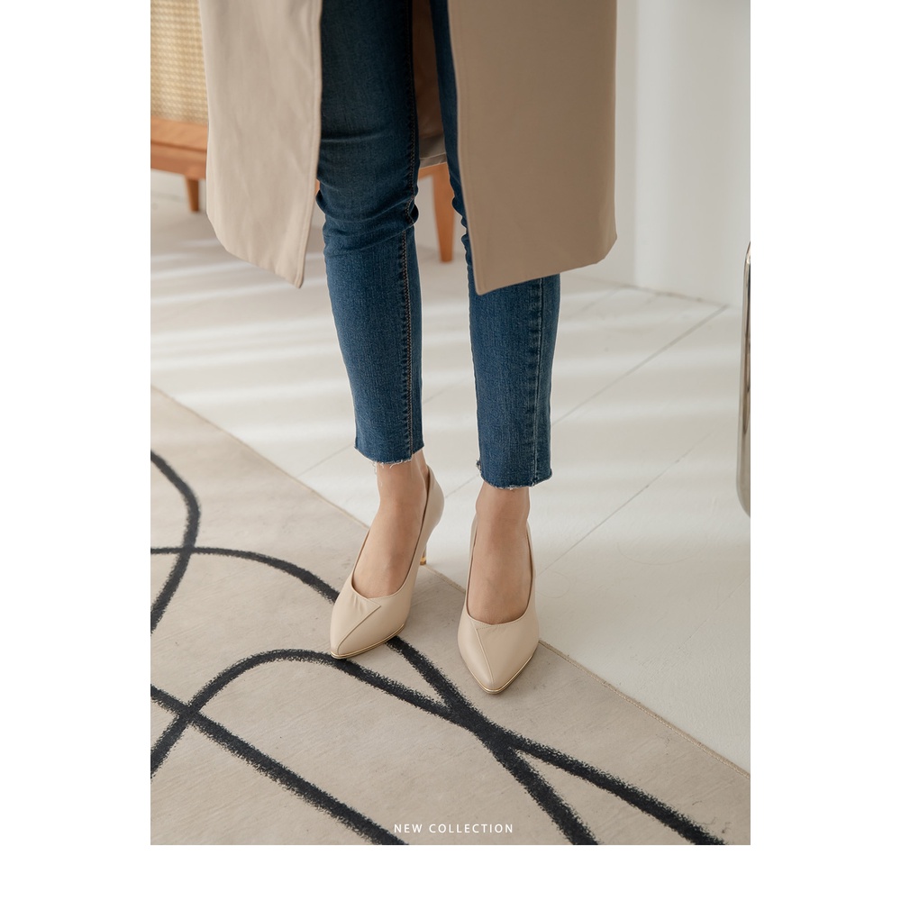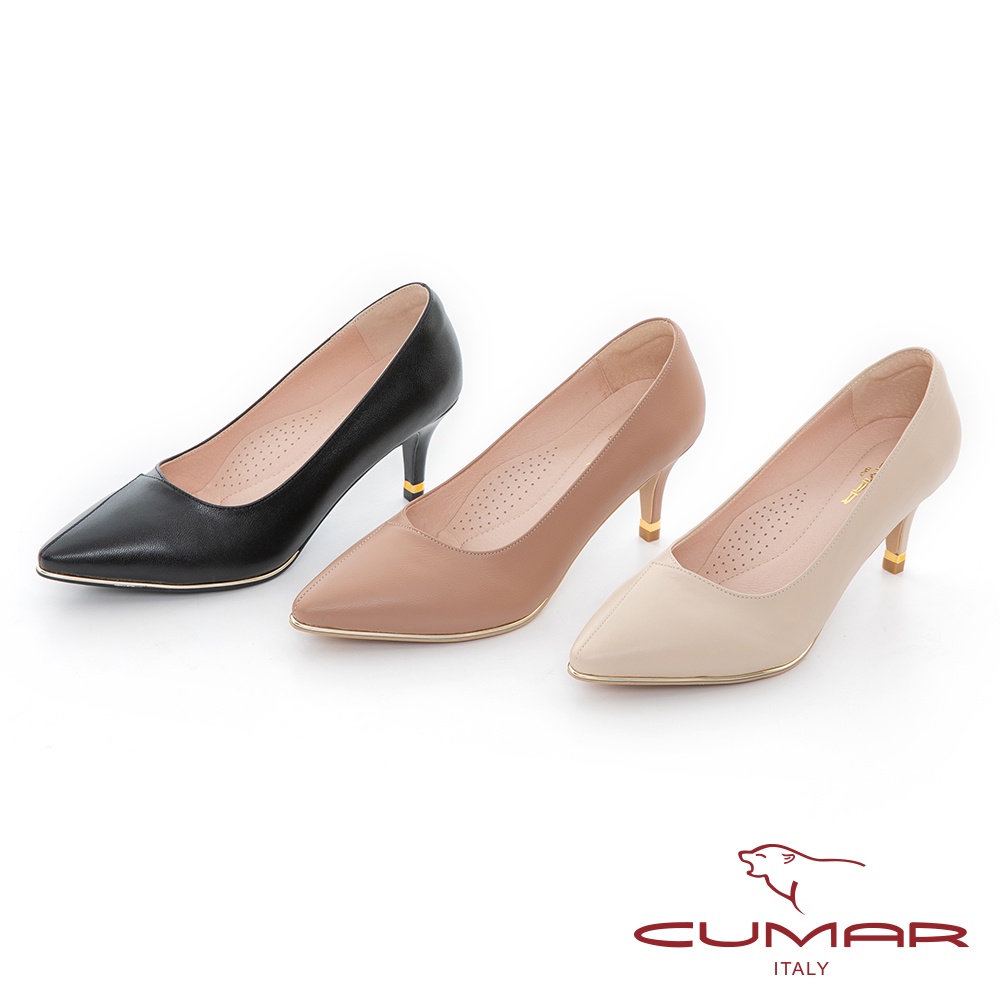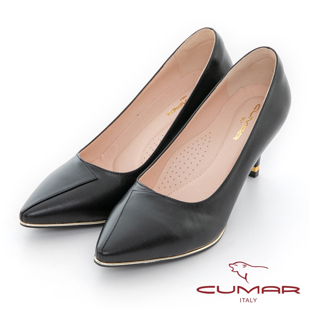【CUMAR】拼接鞋面簡約金屬沿條裝飾高跟鞋722-111